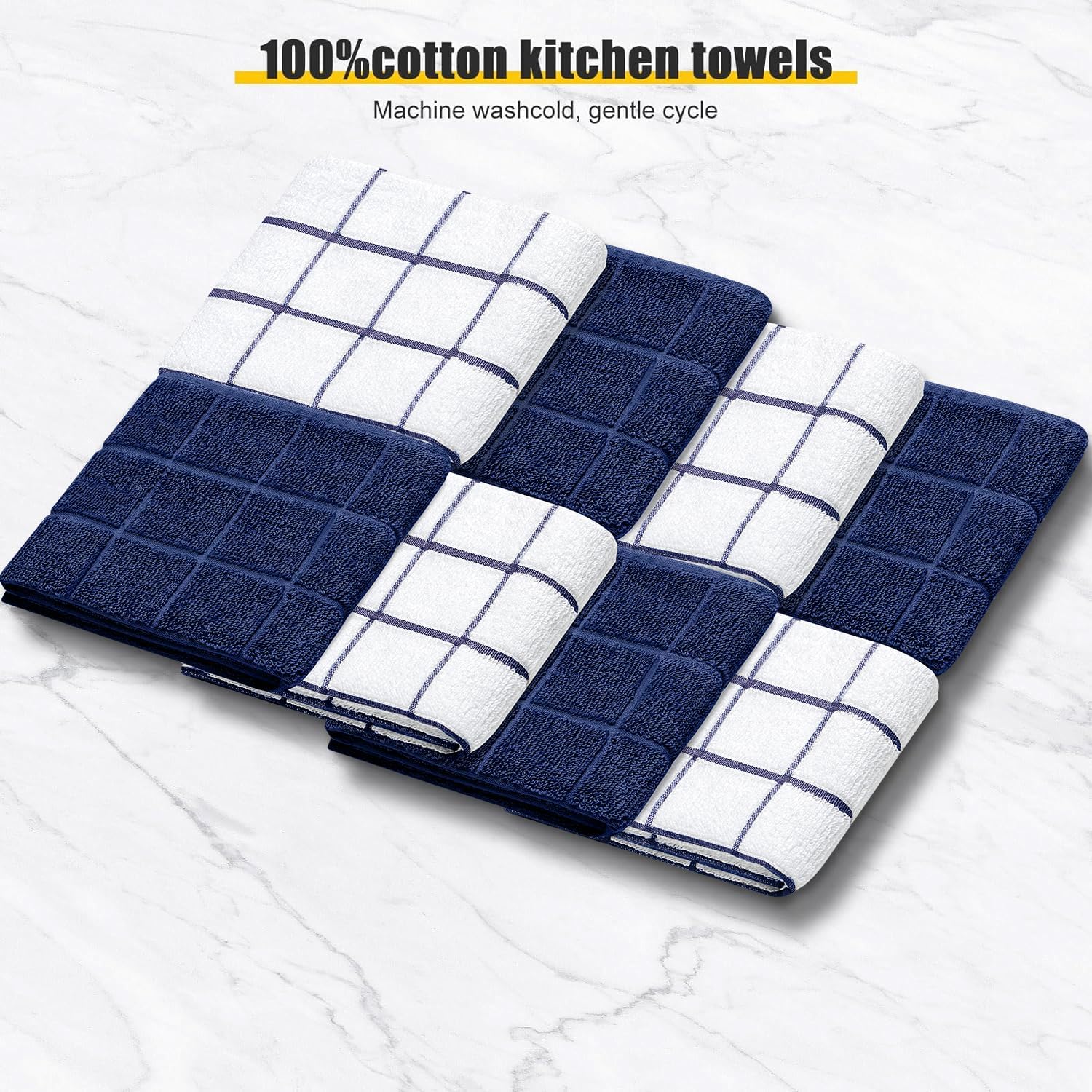 • ABSORBENT & LONG-LASTING TOWELS AND DISHCLOTHS: 4pcs large kitchen towels and 4 pcs small dishcloths are all made of pure spun cotton with waffle weave patterns. These materials are greatly absorbent, quick drying and breathable. The selected fabric is long-lasting and reusable. Drying in time after washing can increase the service life