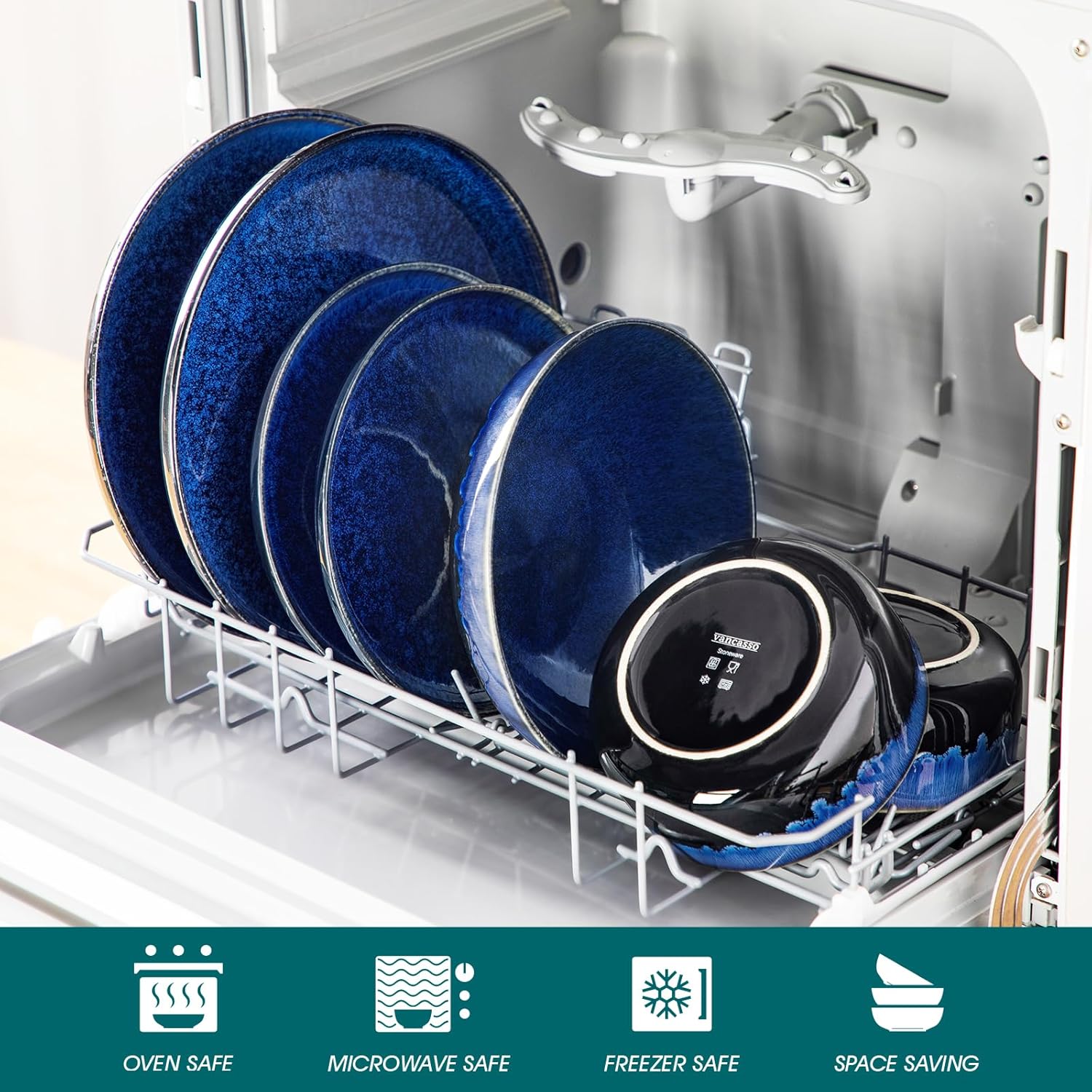 vancasso Starry Plates and Bowls Sets for 6, 24 Pieces Dinnerware Sets, Blue Reactive Glaze Dishes Sets for Kitchen, Scratch Resistant Stoneware Dishes Set, Dishwasher and Microwave Safe