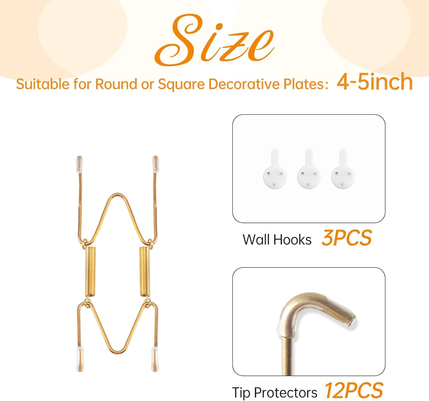 • Package Inclusion: Our package includes 3 wall plate hangers, 3 wall hooks, 12 rubber tip protectors, 1 instruction, fit for holding 4-5 inch round or square plates. You can create a variety of arrangements to decorate your plates to fully meet your hanging and display requirements.
