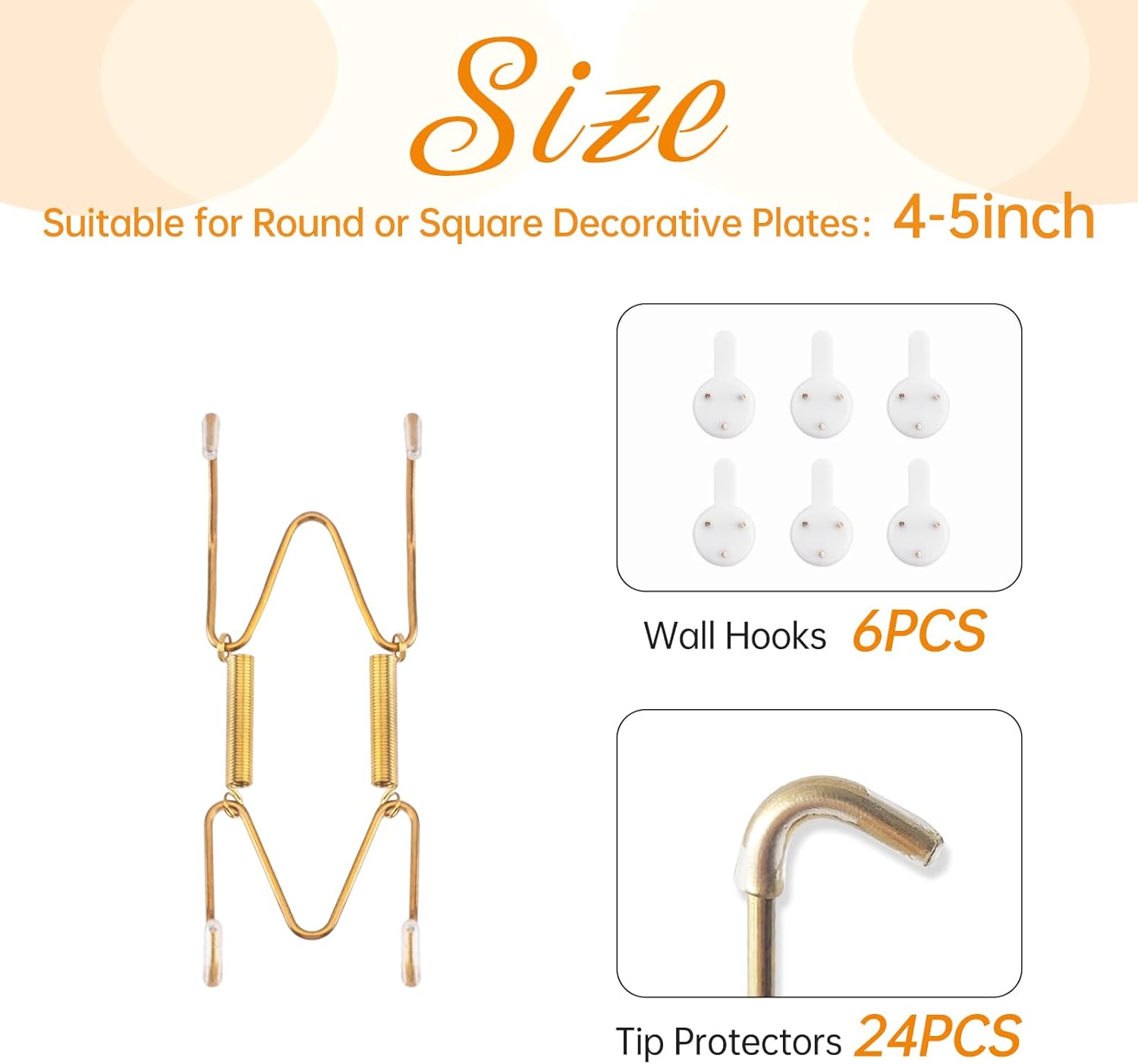 • Package Inclusion: Our package includes 6 wall plate hangers, 6 wall hooks, 24 rubber tip protectors, 1 instruction, fit for holding 4- 5 inch round or square plates. You can create a variety of arrangements to decorate your plates to fully meet your hanging and display requirements.