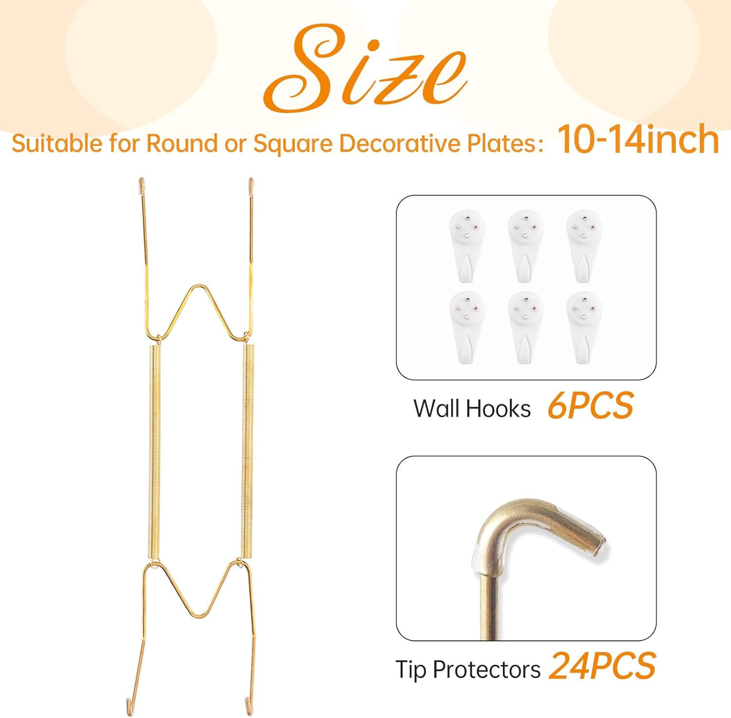 • Package Inclusion: Our package includes 6 wall plate hangers, 6 wall hooks, 24 rubber tip protectors, 1 instruction, fit for holding 10-14 inch round or square plates. You can create a variety of arrangements to decorate your plates to fully meet your hanging and display requirements.