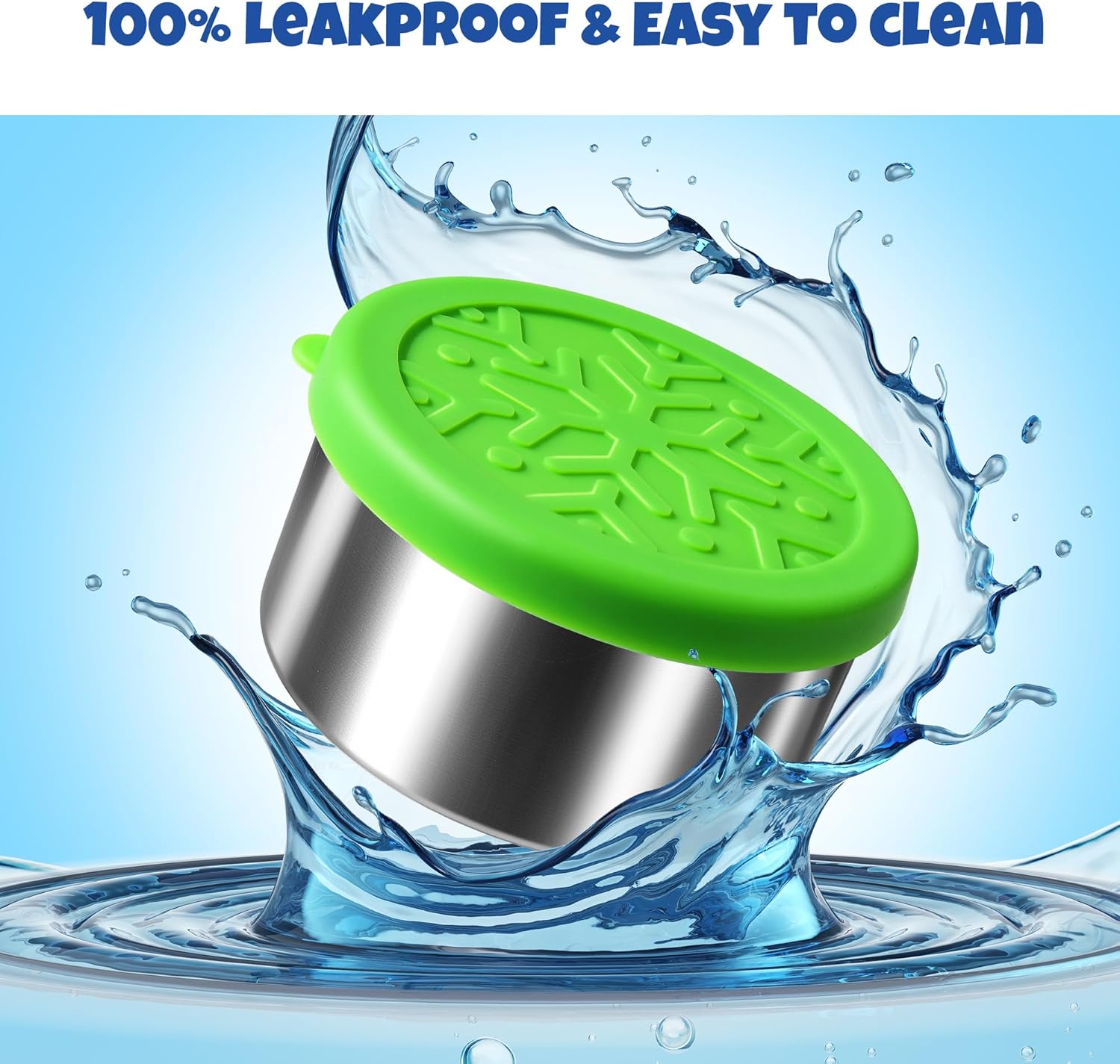 • 2. EASY TO OPEN & LEAK PROOF - The soft silicone lid with small protruding prongs makes it easy for your child to open, and the improved seal design makes these stainless steel food storage containers completely leak-proof, so you can safely put them in your lunch boxes & bags without worry get dirty.