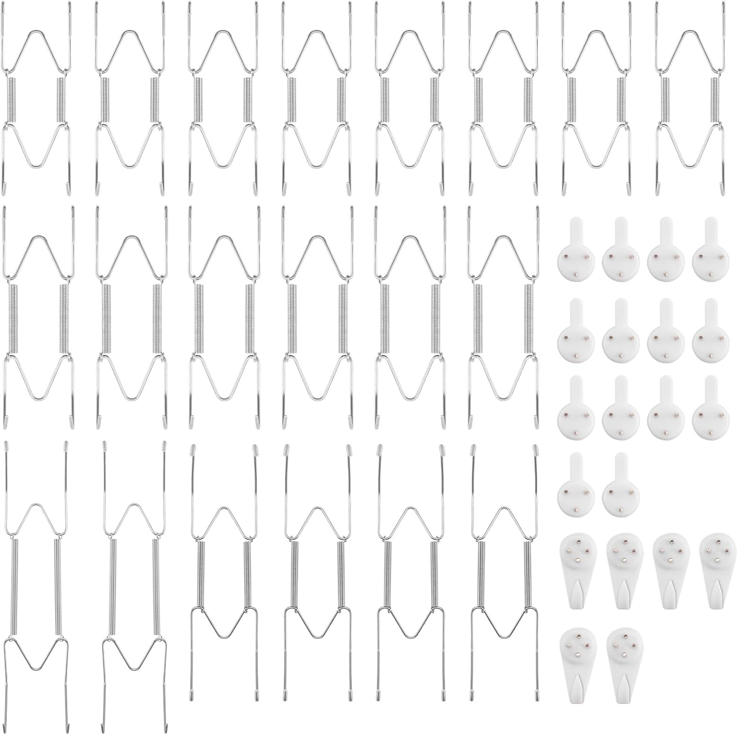 Bilillo 20 Pieces Stainless Steel Spring Plate Hangers for The Wall, 4/6/8/10 Inch Invisible Wire Holders with 20 Pcs Wall Hooks, Fit 4-11 Inch Decorative Plates, Platters & Dishes (Silver)