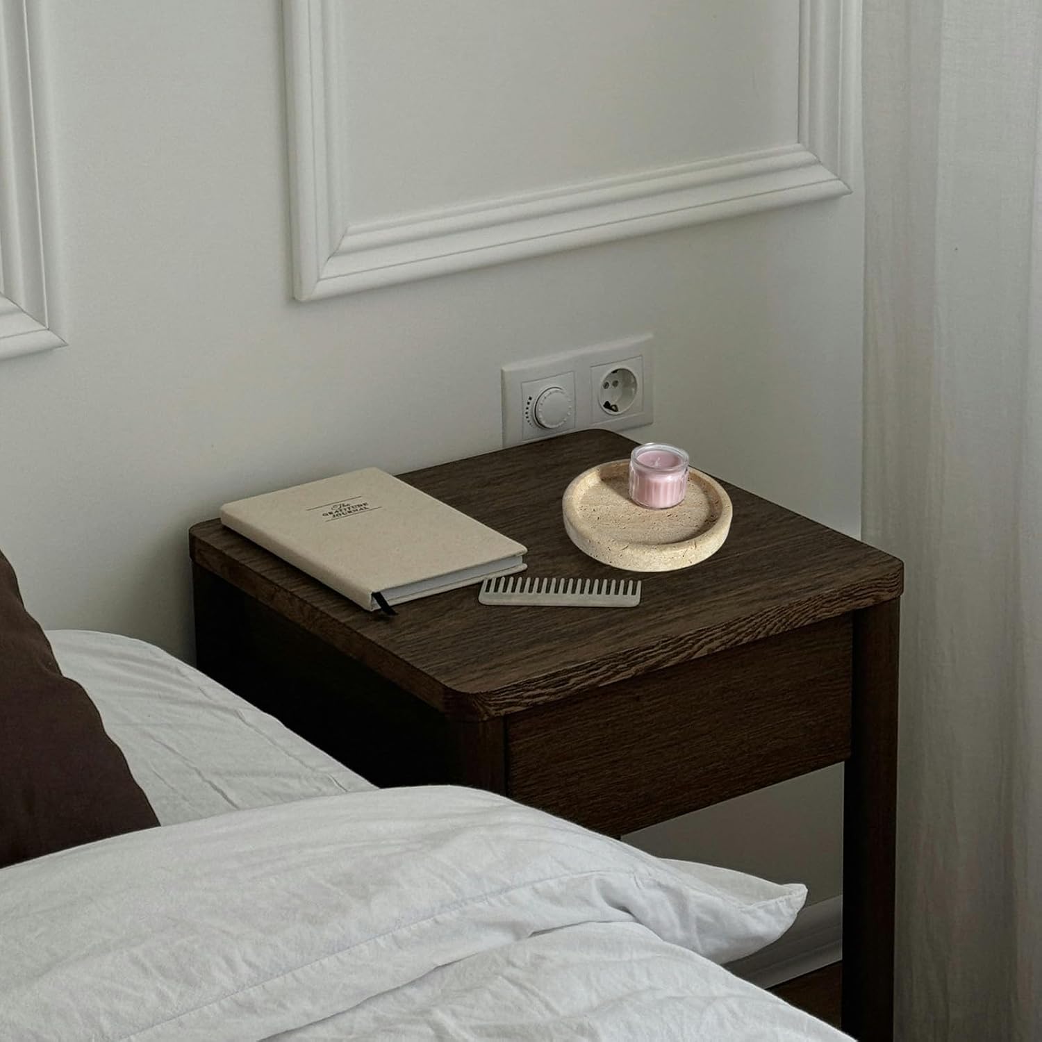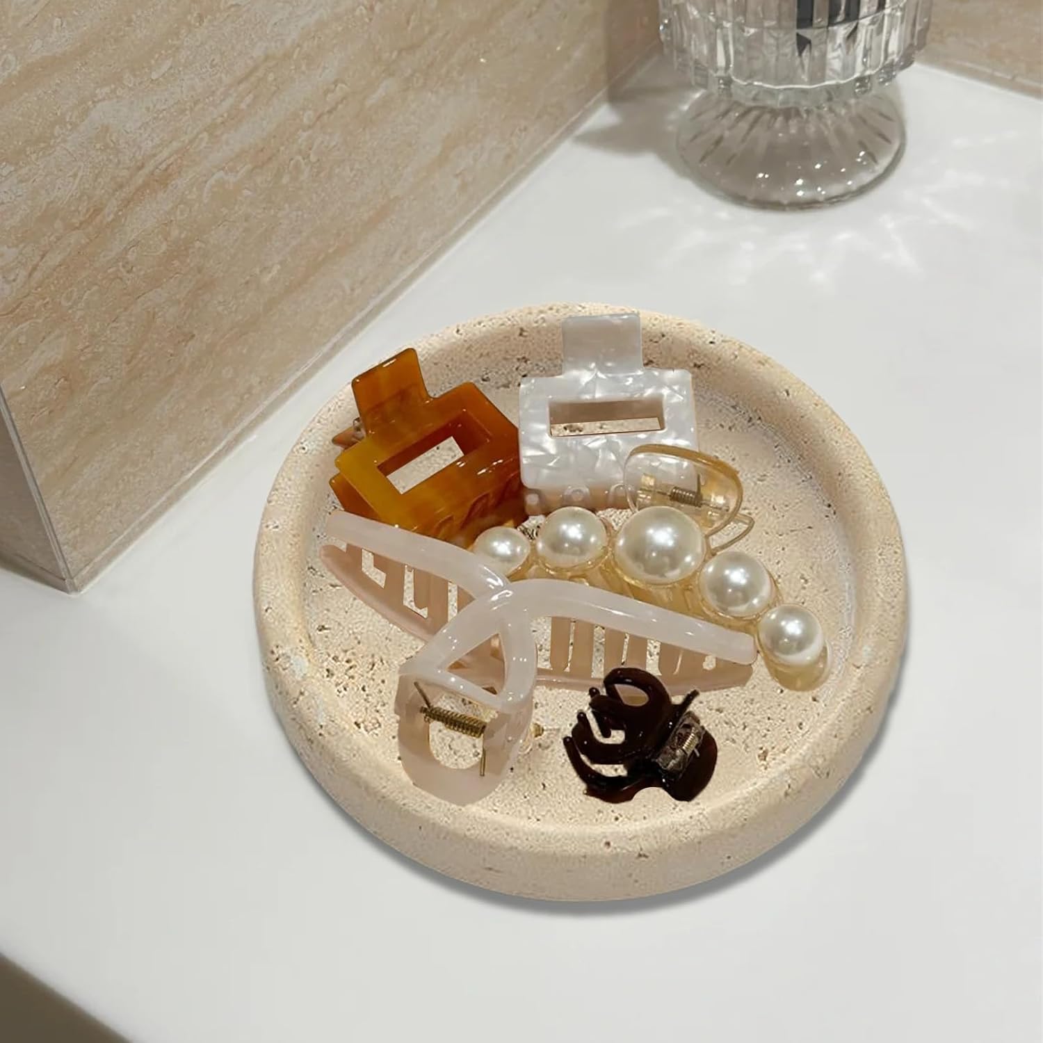 • Travertine Tray: The jewelry dish tray is crafted from natural travertine stone, showcasing unique features that result in a variety of textures and colors. The predominant hue is beige, allowing for seamless integration into diverse environments.