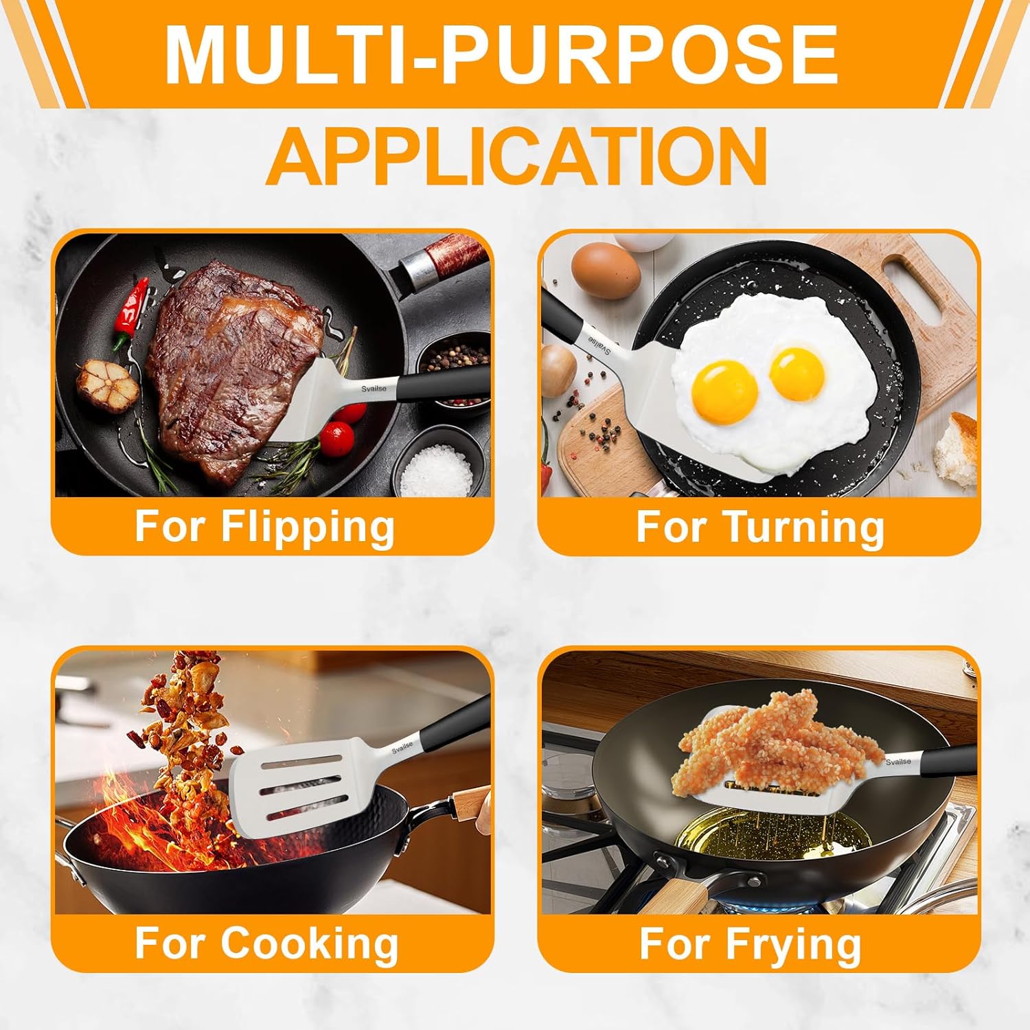 • Upgraded Thickened Material: This spatula turner set is made of thickened, heavy-duty stainless steel that offers excellent corrosion and rust resistance, ensuring sturdiness, durability, and resistance to breakage. Food-safe, and no coating peeling off