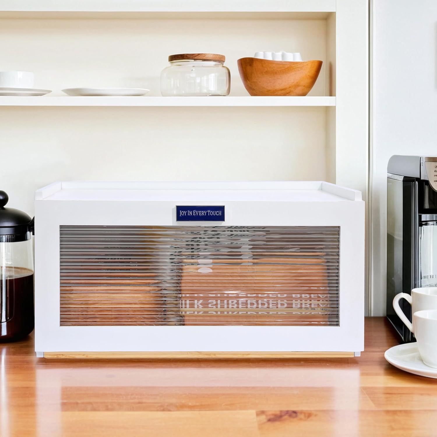 White Bamboo Bread Box for Kitchen Countertop - Mothers Day Gifts for Mom,Kitchen Essentials Bread Storage for Homemade Bread Pantry Organizers and Storage Bread Holder