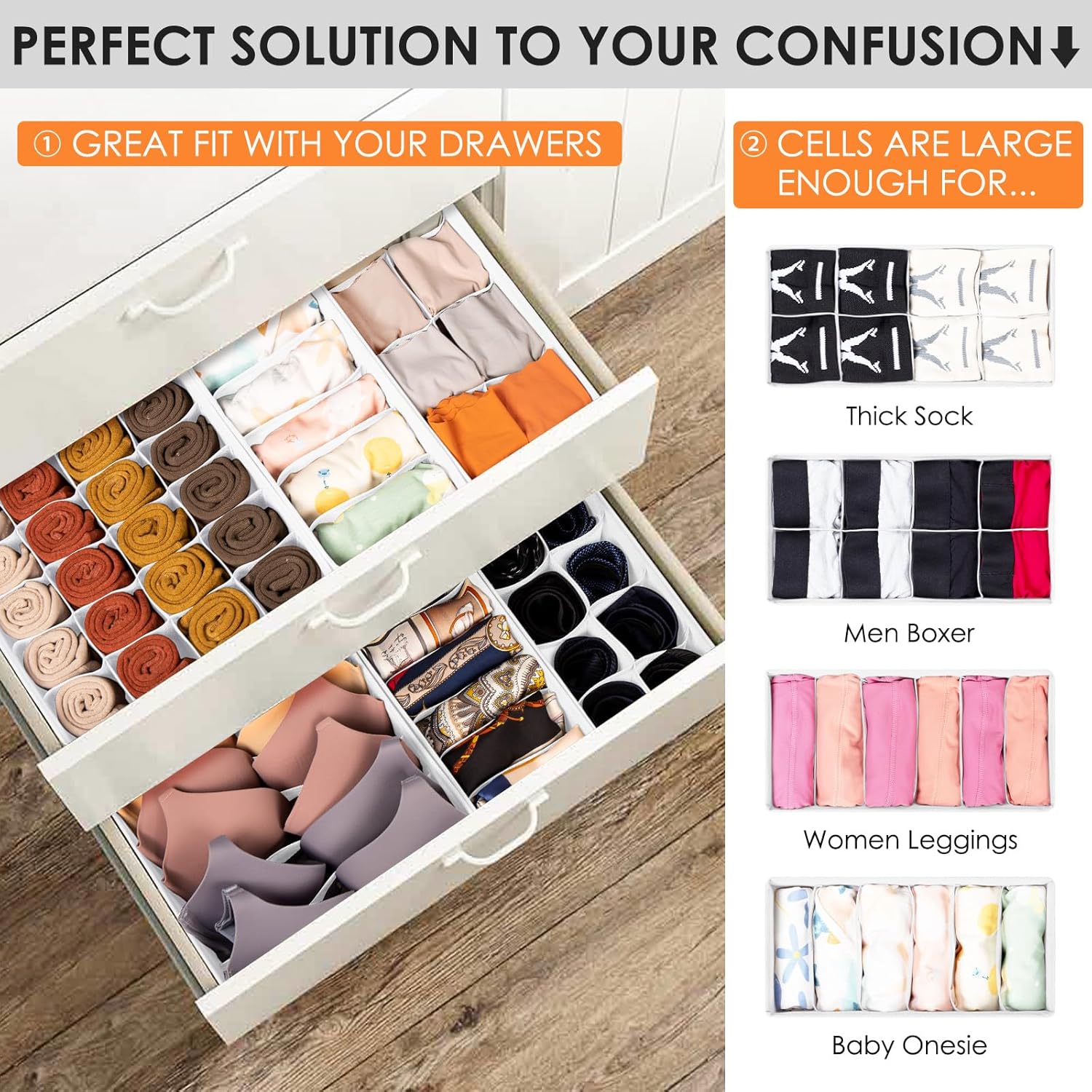 • Shape : Perfectly fit with your clothes drawers, deep drawers, sock underwear drawers