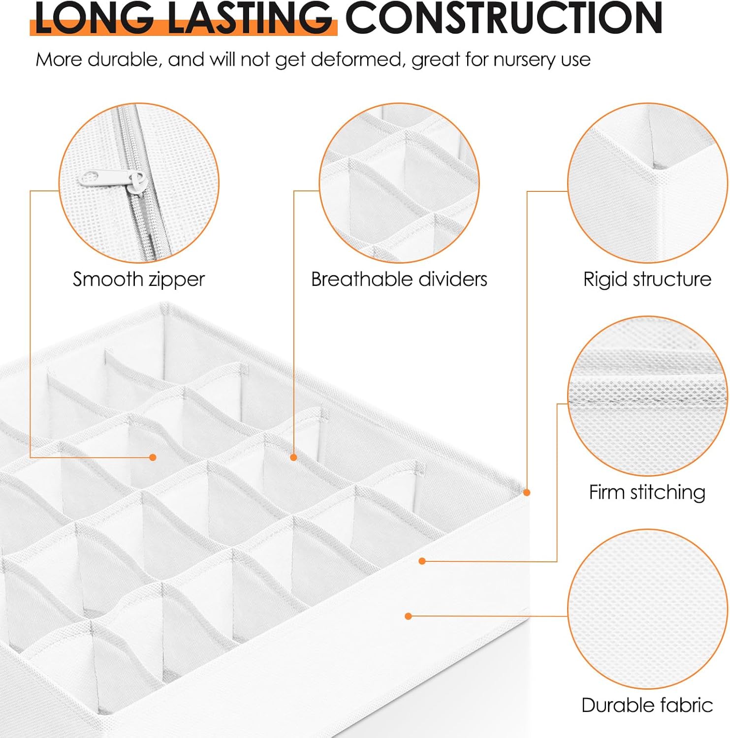 • 【QUALITY STRUCTURE】These dresser drawer organizers feature robust non-woven fabric and expert stitching for extra durability. Enhanced with sturdy boards on the sides and bottom, these organizer bins stay rigid for years. Odorless and perfect for nursery baby clothes storage.