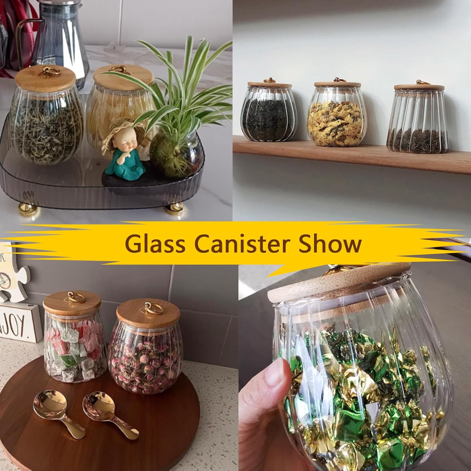 • ☕【Glass Decorative Jars with Lids】Decorative glass canister with lid,With petal texture design, can be used as a decoration for home/kitchen/coffee bar/pantry, etc.