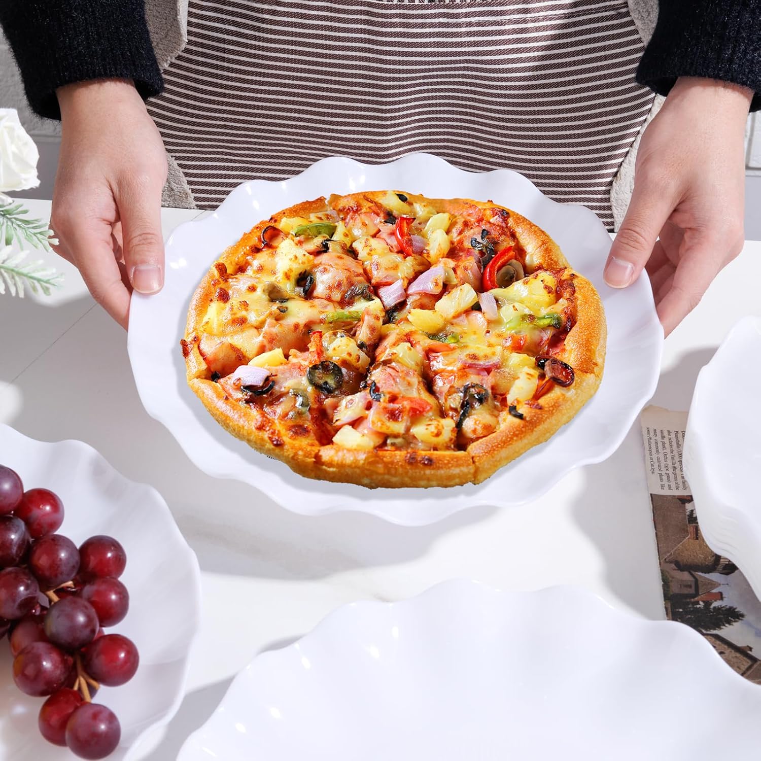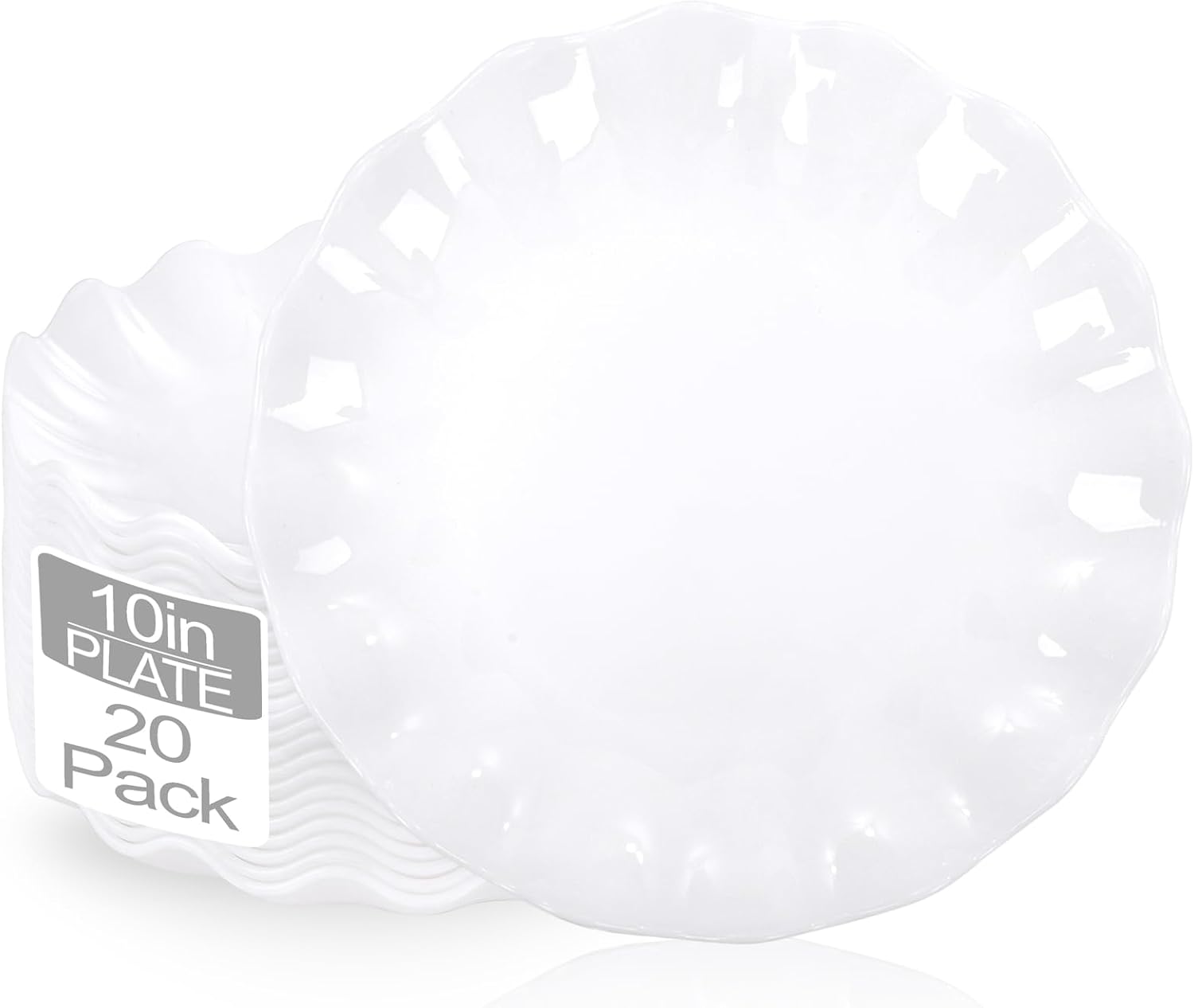 • 【Flexible Combination of 20 piece set】The scalloped plastic plates includes 20pcs 10 inch dinner plates,suitable for gatherings or backup use of 20 people.The pure white minimalist design can be used alone or paired with other tableware to upgrade the dining table style,making it the cost-effective first choice for family meals,outdoor picnics camping ,or holiday parties!