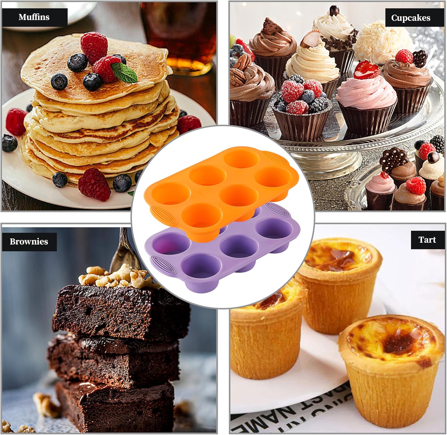 JJOO 2PCS Silicone Muffin Pan, 6-Cavity Nonstick Muffin Cupcake Pans Molds for Baking, Great for Cupcakes, Muffin, Brownies and More, BPA Free, Pack of 2 Colors (Orange and Purple)