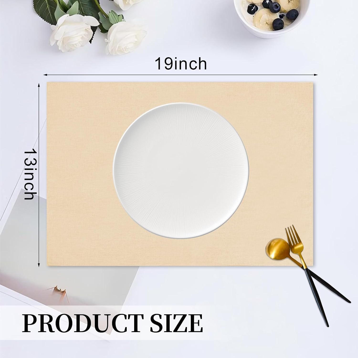 Placemats Set of 6 Linen Type Fabric Cloth Placemats, 19 x 13 Inch Double Layered Thick Wrinkle Free Heat Resistant Table Place, for Dining, Kitchen, Party (Beige, 48 * 33cm)
