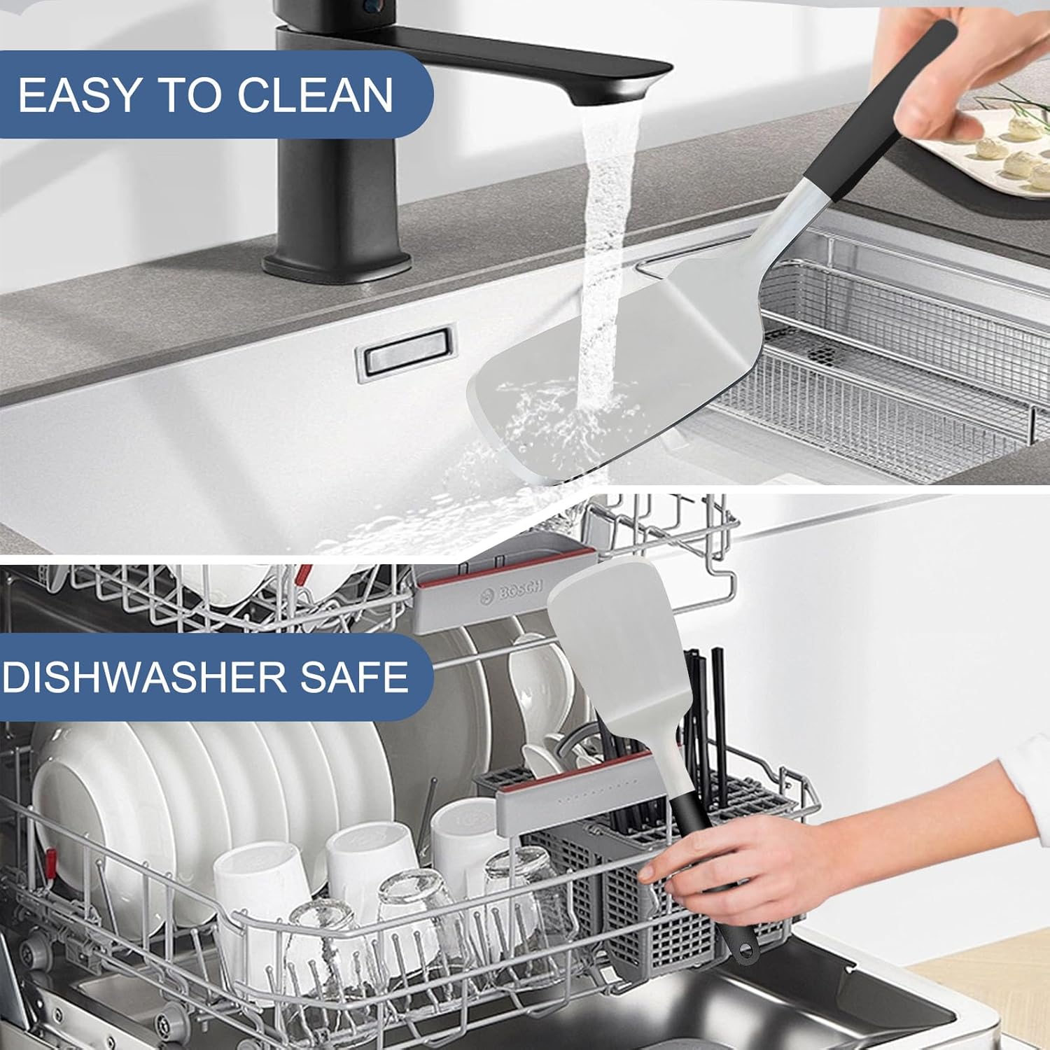 • Effortless Cleaning: Crafted from food-grade stainless steel, these spatulas boast a polished finish that resists food sticking and rust, ensuring effortless maintenance and cleaning. This spatula set is dishwasher-safe