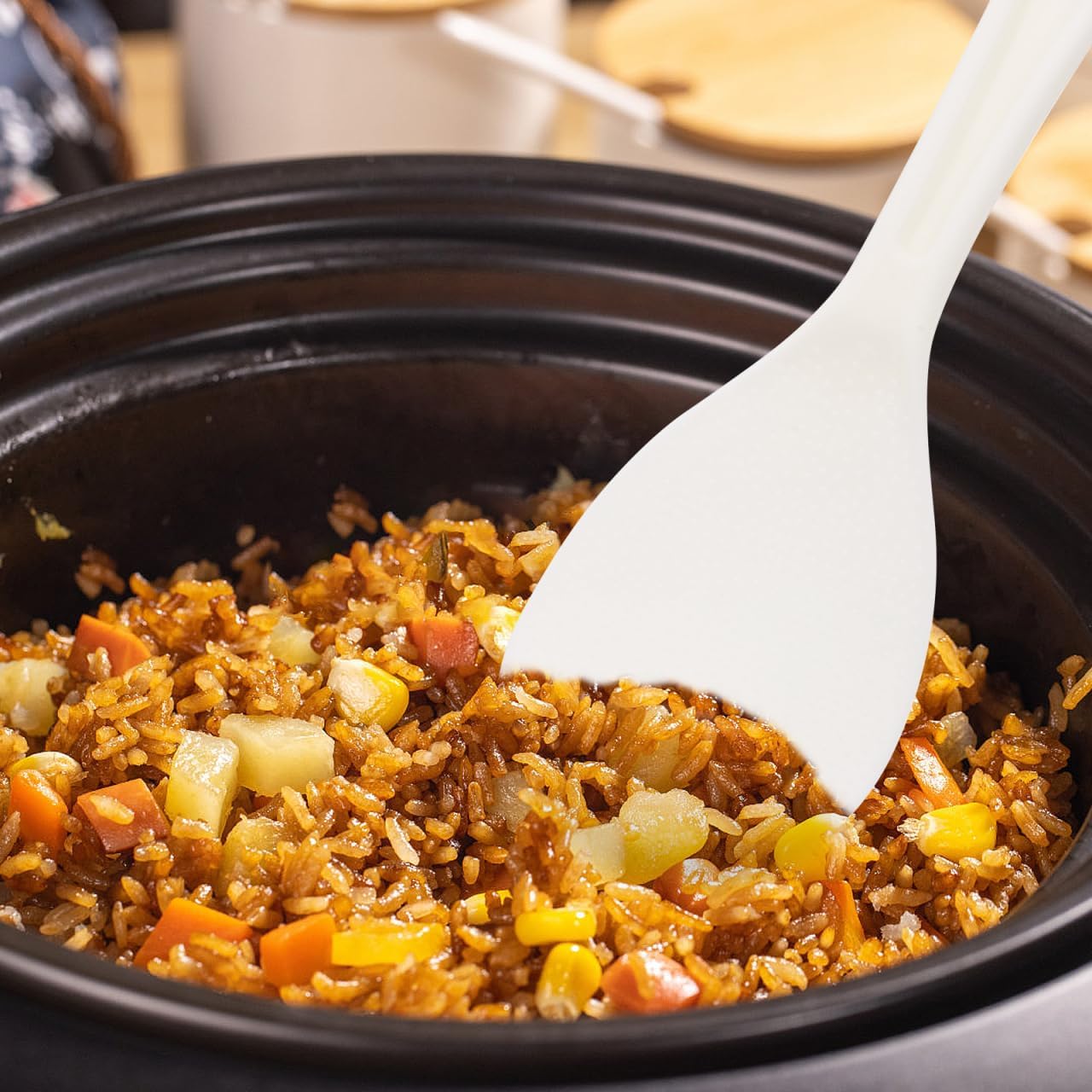 • Reusable rice spatula-- the nonstick coating on this spoon makes stirring and serving rice a breeze, as the rice won't stick to the spoon and make a mess,wear-resistant rice scooper
