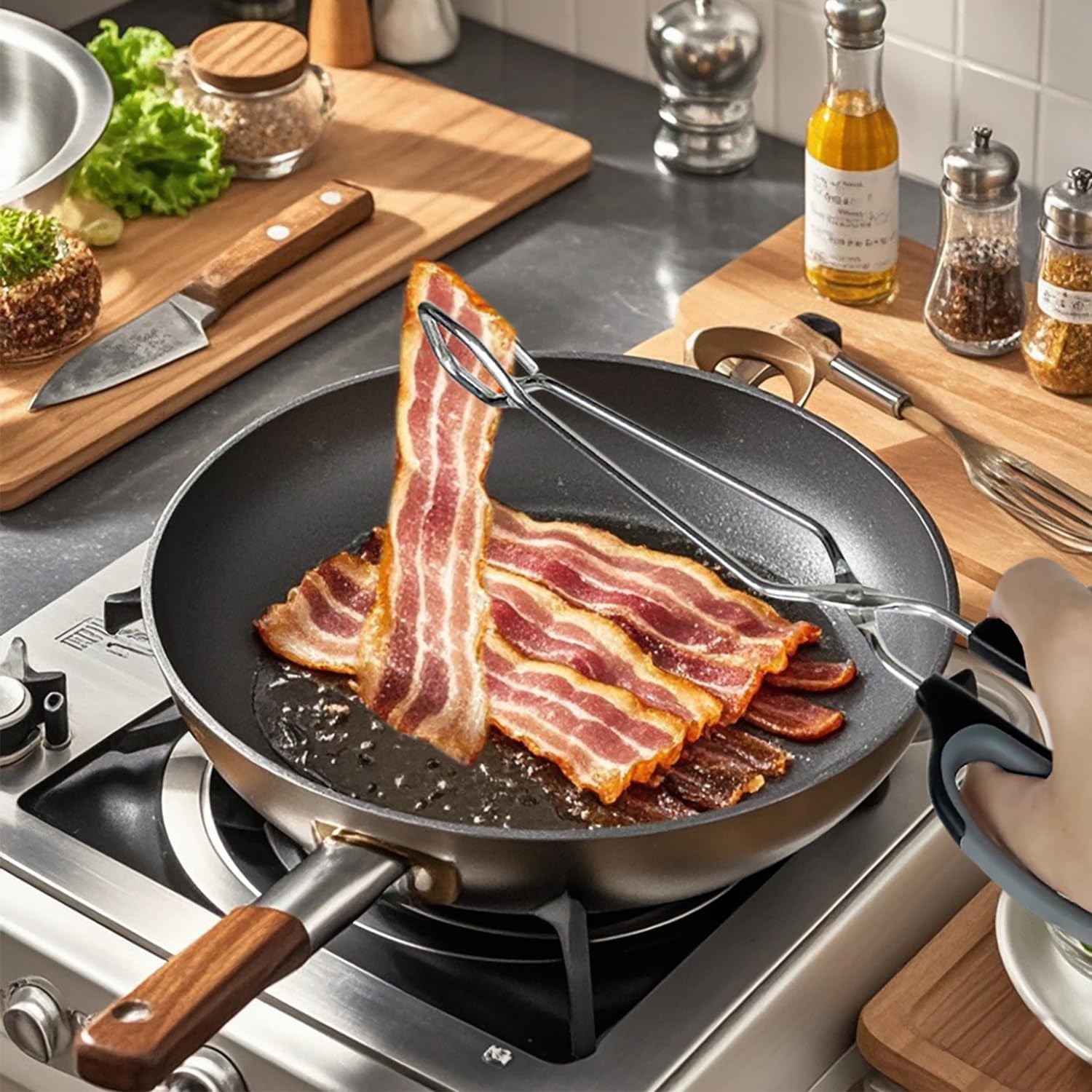• MULTIPLE APPLICATIONS - The tong gripper has an imprint on metal to prevent food slippage, great for grilling in the kitchen or outdoor barbecue. Works well for turning and lifting meat, fish, crab, chicken, turkey, burger, hotdog, corn, vegetable salad and taco etc.