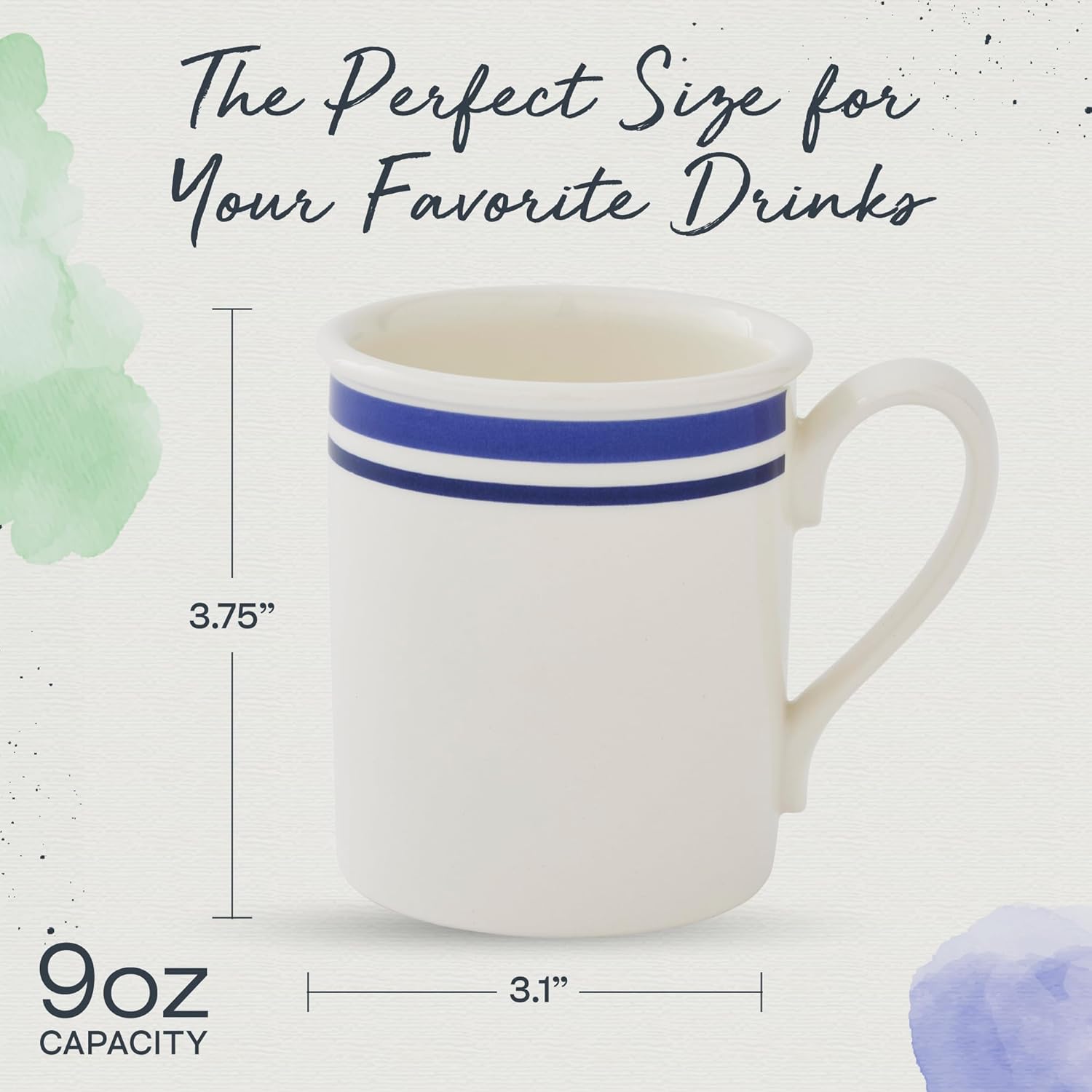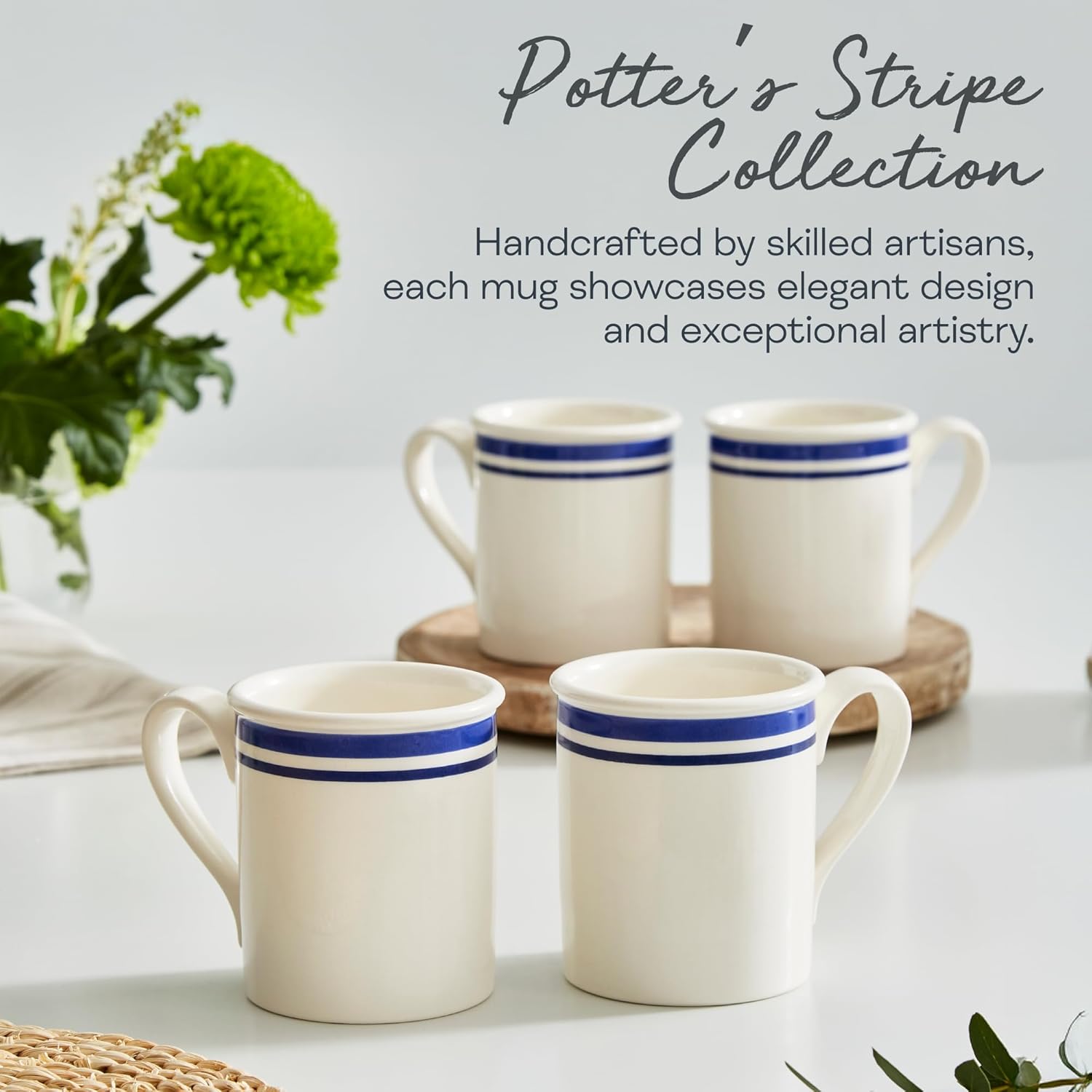 Portmeirion Potter's 9oz Stripe Breakfast Mug (Set of 4) - Elegant Earthenware Tea Mugs with Handle, Microwave, Dishwasher & Freezer Safe - Classic Stripe Design, Ideal Gift for Coffee Lovers (Blue)