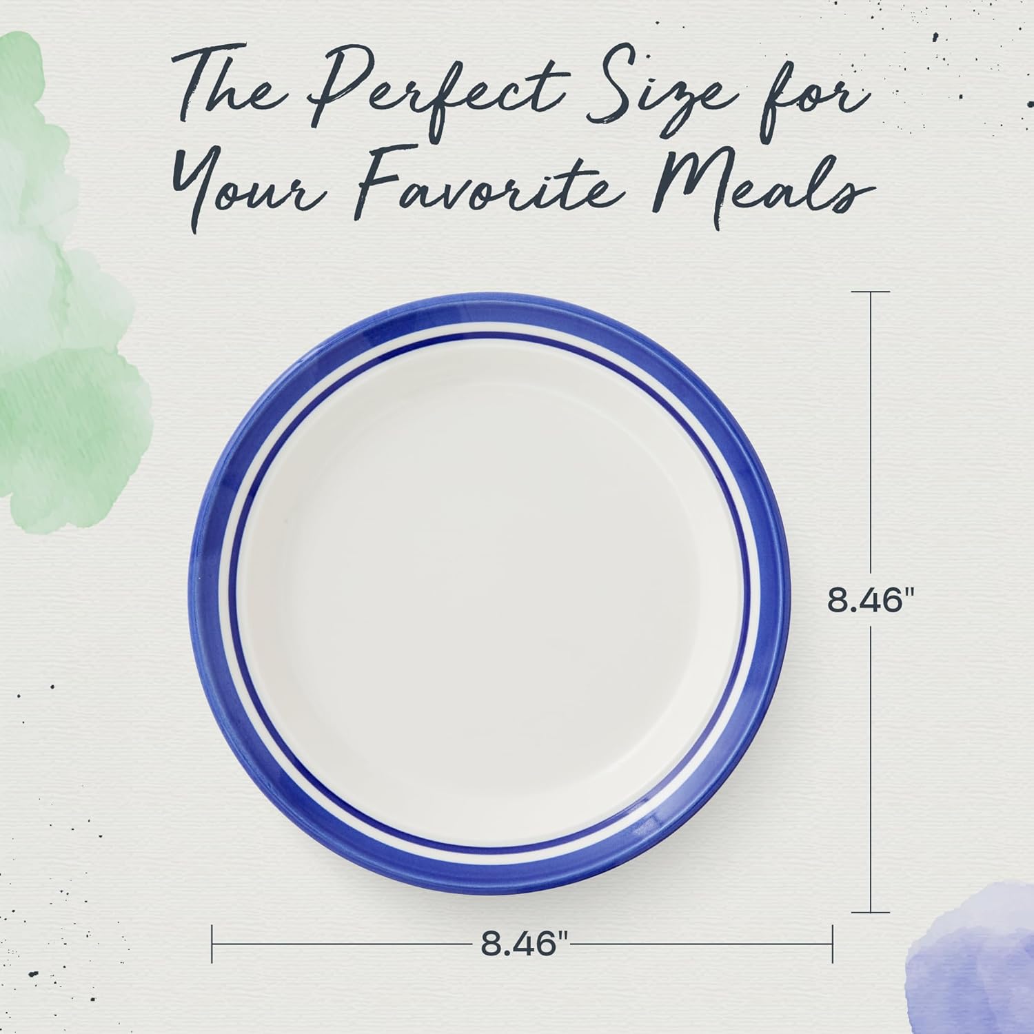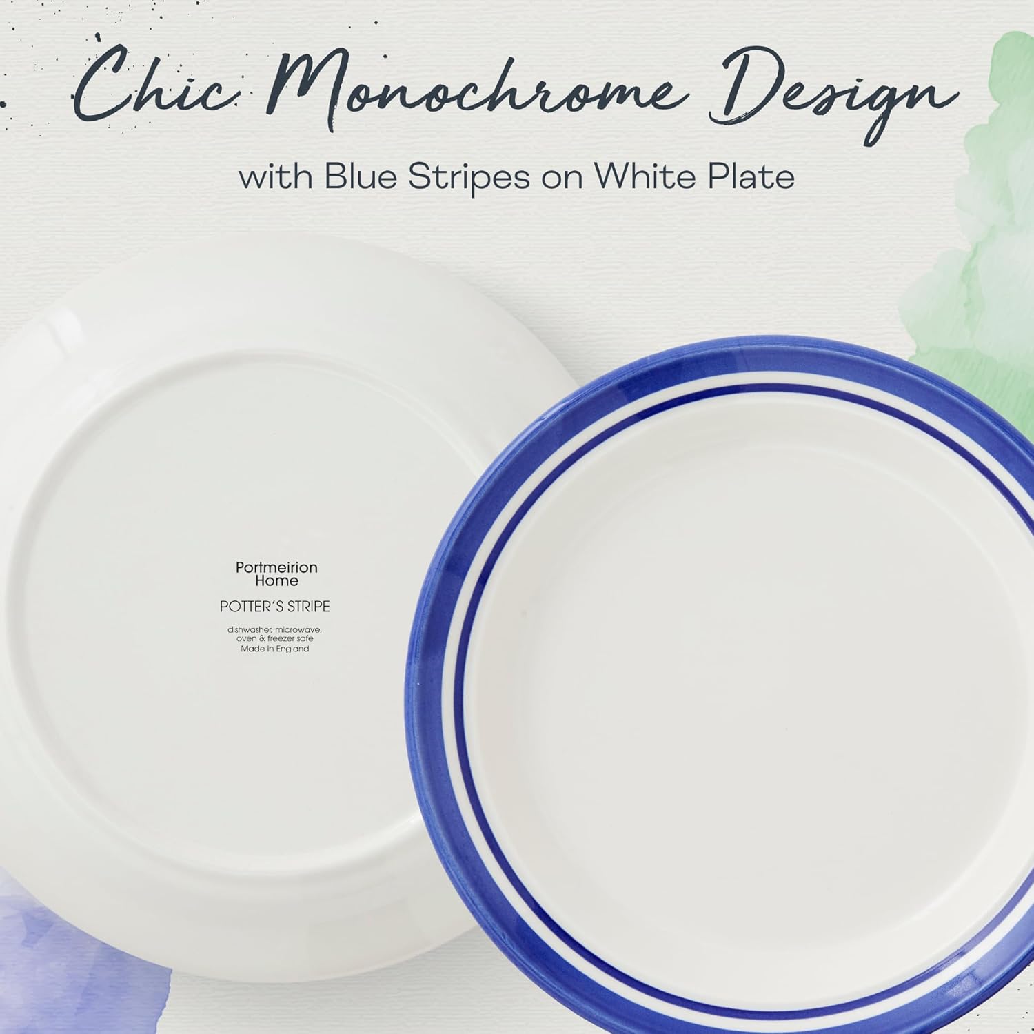 • Modern But Classic: This Portmeirion Potter's Stripe Salad Plate Set features a classic blue striped rim that adds a refined yet contemporary look to your table, complementing a variety of home decor styles.
