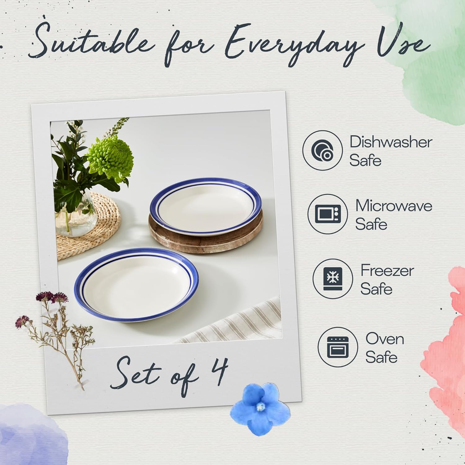 Portmeirion Potter's Stripe Salad Plate (Set of 4) - 8" Earthenware Plates with Classic Striped Rim - Microwave, Dishwasher, Freezer, Oven Safe - Ideal Modern Dinnerware Set (Blue Stripe)