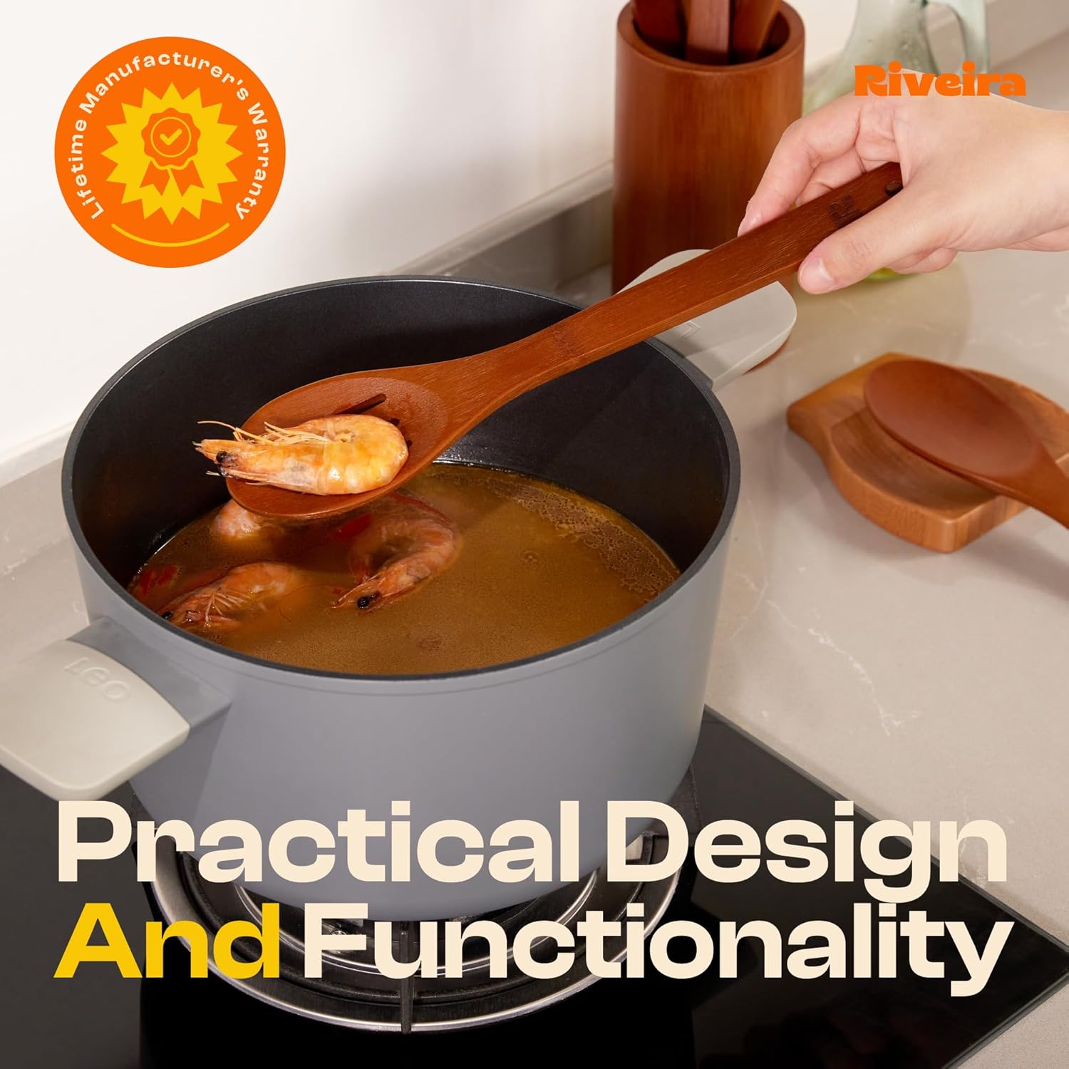• Versatile and Eco-Friendly Premium Brown Bamboo Utensils – Our kitchen utensil and wood spoons are made from environmentally friendly premium brown bamboo, which is long-lasting and sustainable. The wood cooking utensils set is designed for all cooking styles, offering tools for stirring, serving, and flipping. These wooden utensils for cooking are perfect for non-stick cookware, providing a scratch-free experience. These wood cooking utensils make a great addition to your kitchen.