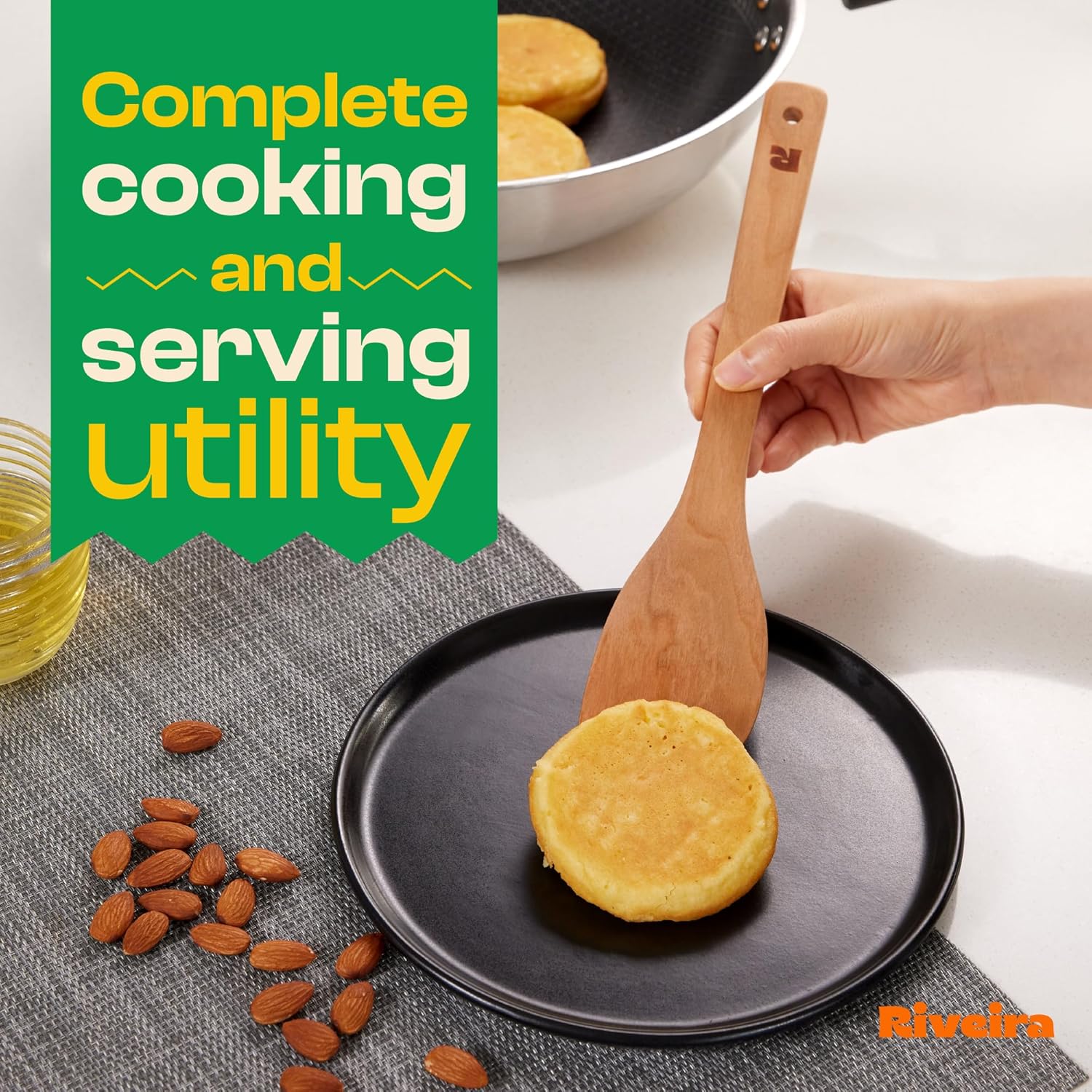 Riveira Cherry Wooden Spoons for Cooking Set of 6 – Natural Cherry Wooden Cooking Utensils, Wooden Spatula, Wooden Spoon - Premium Quality Wooden Utensil Set for Non-Toxic Cooking