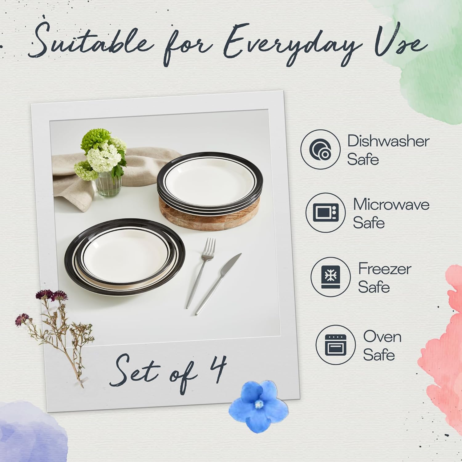 Portmeirion Potter's Stripe 10.5" Dinner Plate (Set of 4) - Handcrafted Earthenware Plates with Accent Rim, Microwave & Dishwasher Safe - Ideal Tableware for Modern & Traditional Dining (Black Stripe)