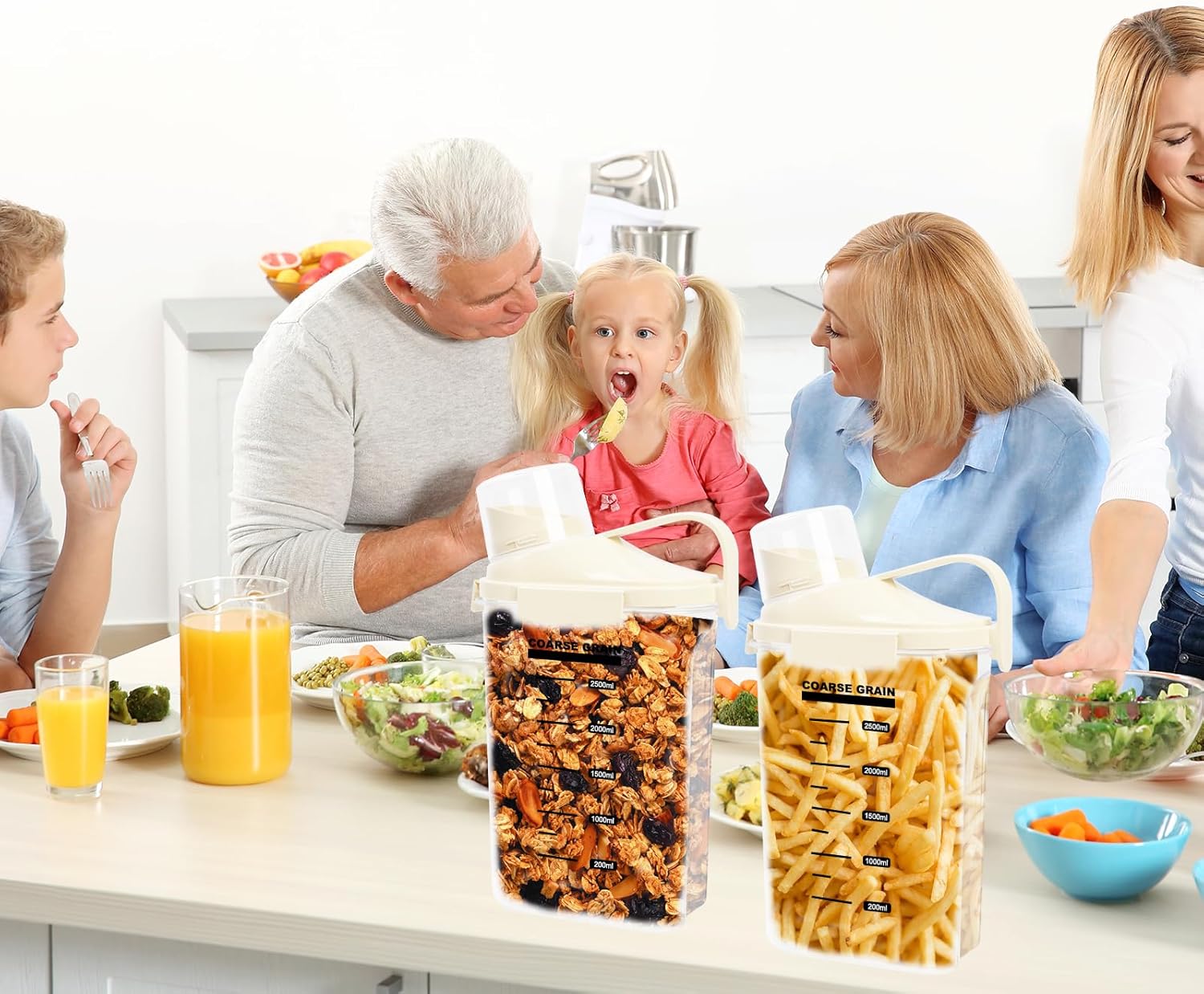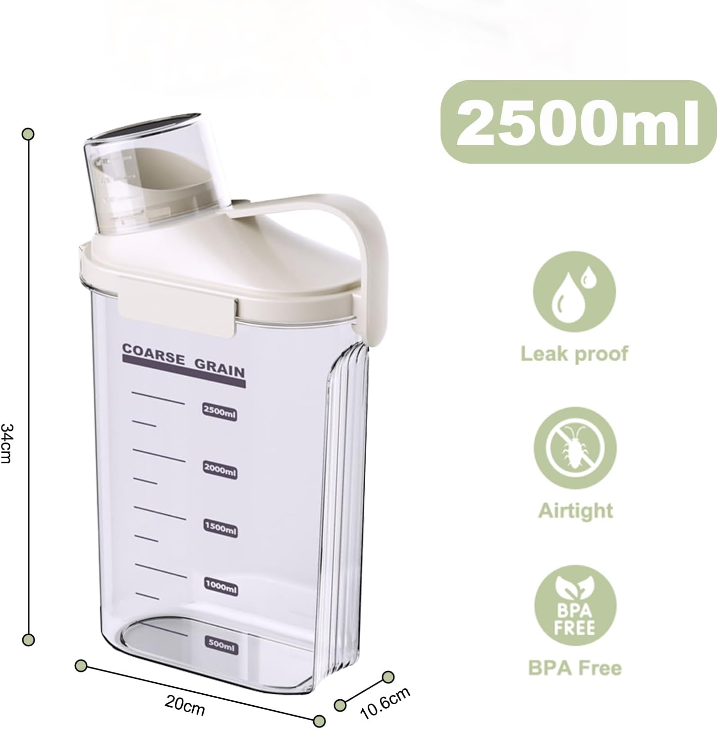 • Bpa Free, Food Grade Plastic: Crafted from high-quality, food grade materials, these clear dry ingredients storage containers are designed to be durable and safe for storing dry products. ATTENTION: PACKAGE INCLUDES: 2 x 2500ML CEREAL DISPENSER(White).