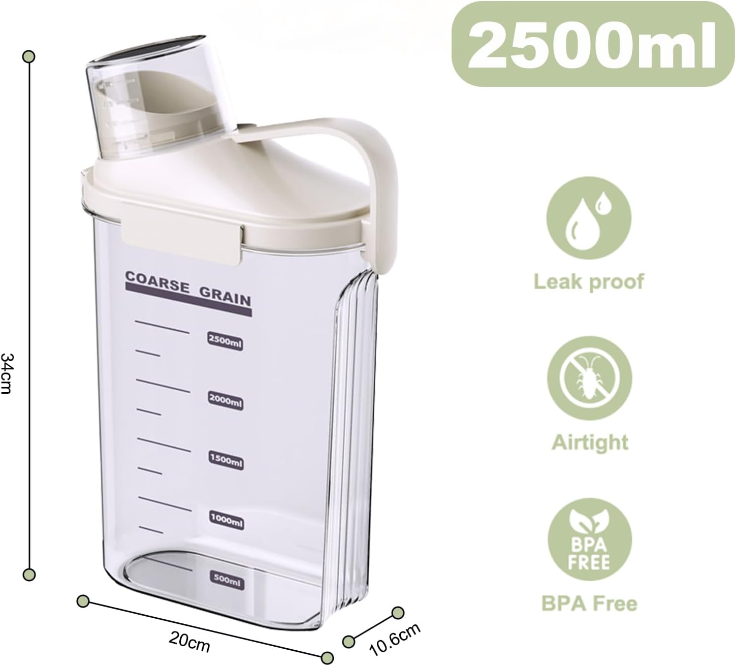 • Food-Grade & BPA-Free: Trust our durable plastic container for safe, fresh food storage. Transparent design for instant visibility. Generous 2500ML cereal dispenser in sleek white complements any kitchen. Space-saving design maximizes storage efficiency.