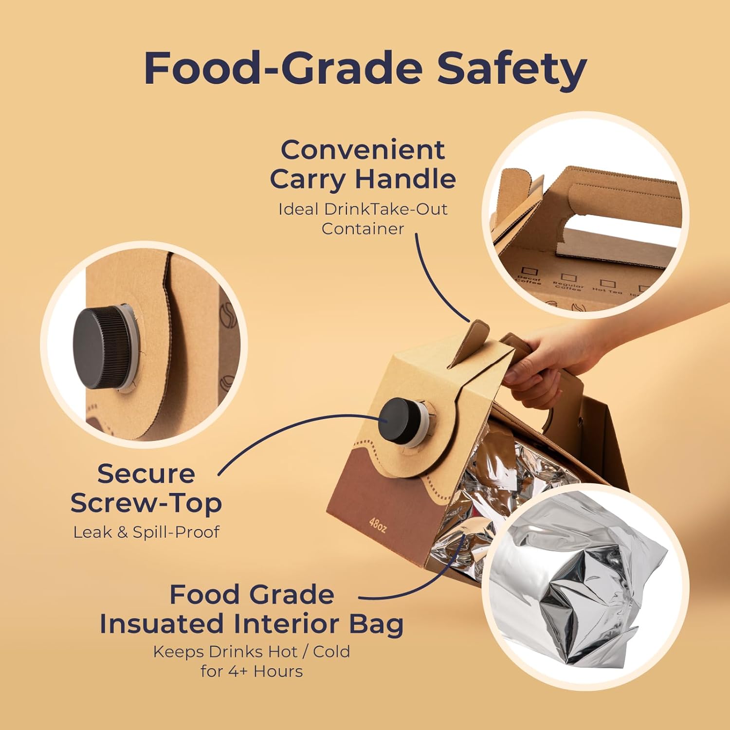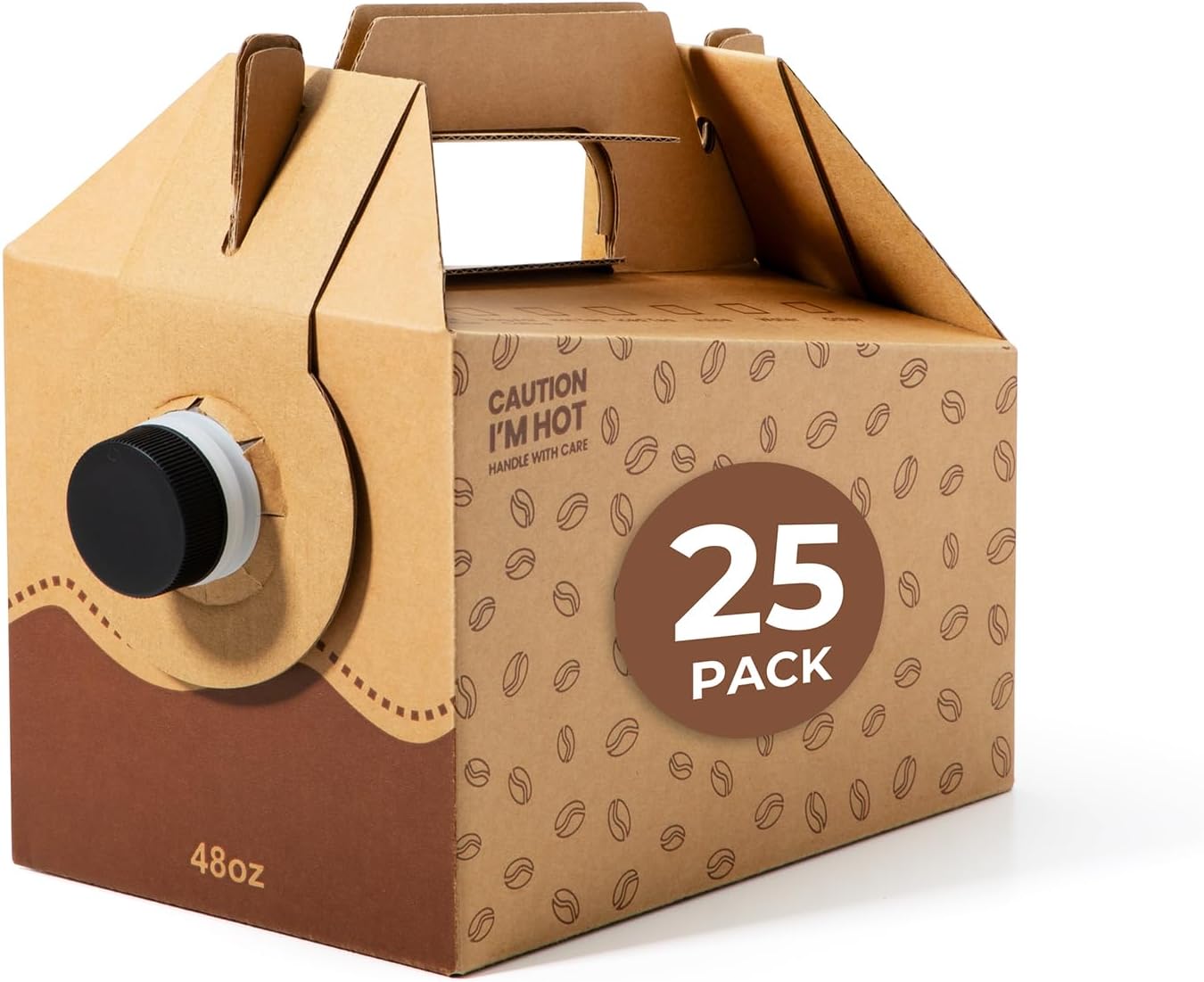 Fit Meal Prep 25 Pack 48 oz Disposable Coffee Dispensers with Handle, Insulated to Go Storage Containers, Portable Coffee Box Cold Hot Drink Dispenser Bulk for Party, Catering, Office, Take Out