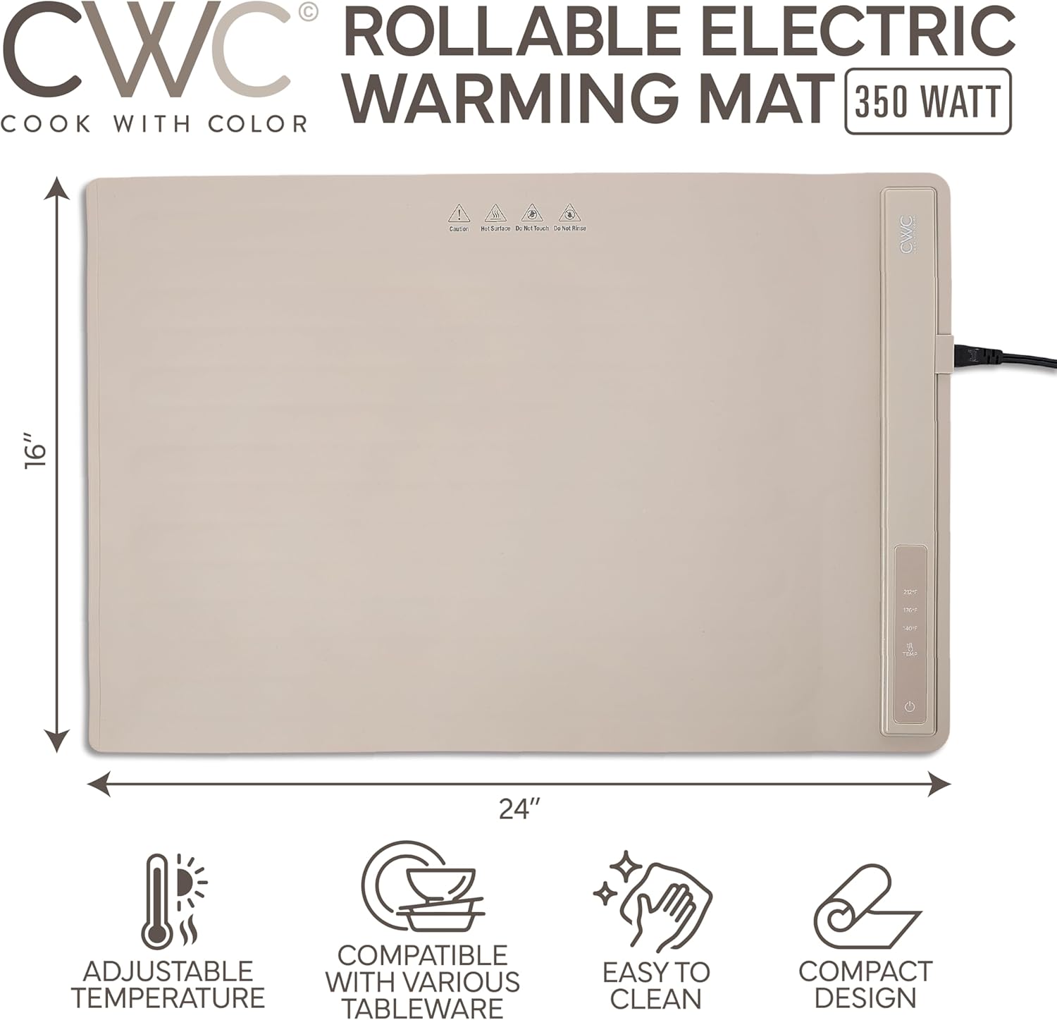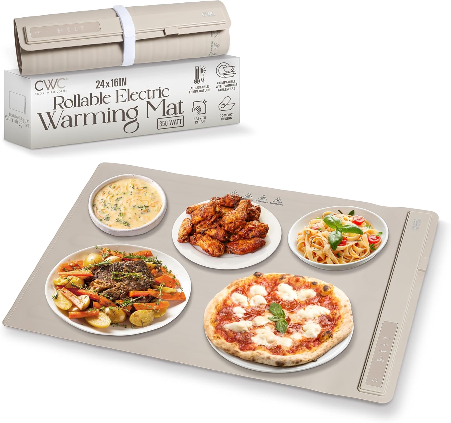 COOK WITH COLOR 350W Electric Food Warming Mat - Portable Food Warmer Tray with Adjustable Temperature, Fast 60-Second Heating, Auto Shut-Off, Rollable Silicone Pad for Parties & Everyday Use, Sand
