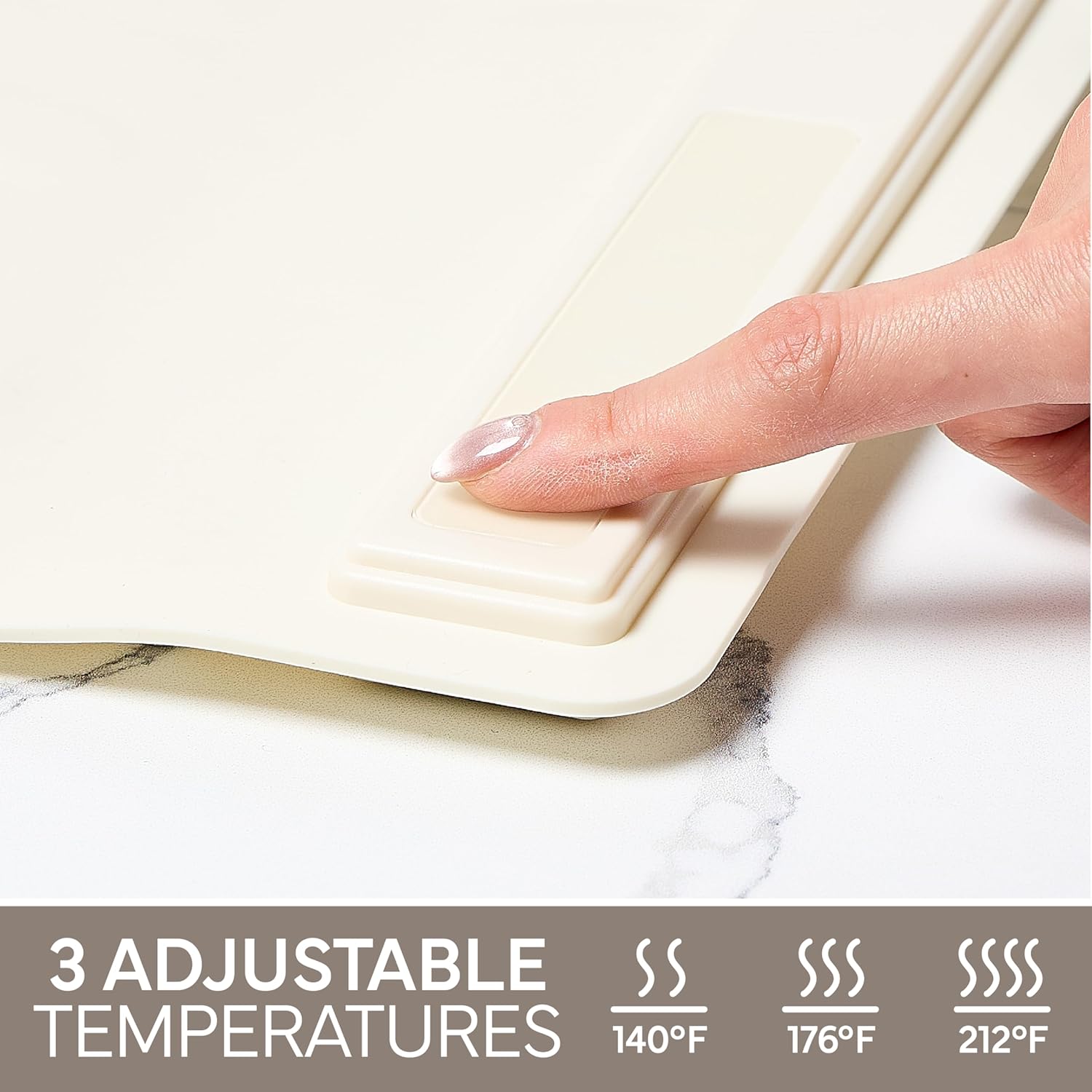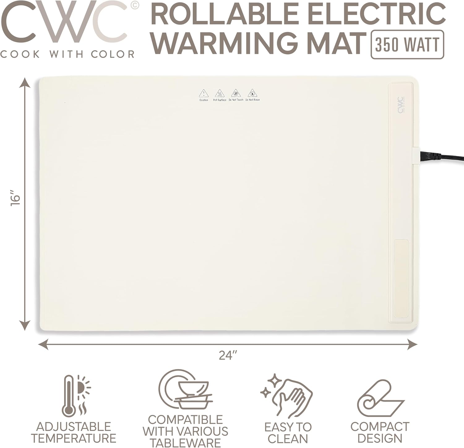 COOK WITH COLOR 350W Electric Food Warming Mat - Portable Food Warmer Tray with Adjustable Temperature, Fast 60-Second Heating, Auto Shut-Off, Rollable Silicone Pad for Parties & Everyday Use, Cream