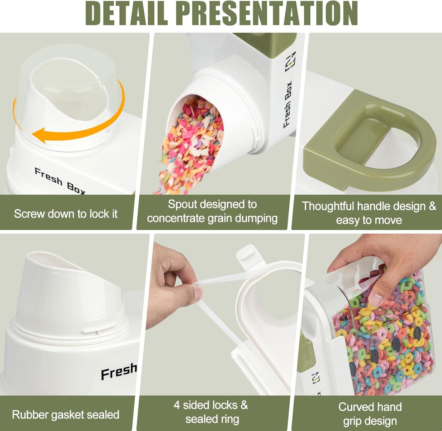 • Multifunctional Dry Food Storage Containers: Our cereal containers storage is designed for versatility, perfectly suited for storing not just cereal, but also beans, sugar, rice, nuts, snacks, pet food, candy, and even laundry beads – making it an essential addition to your pantry organization
