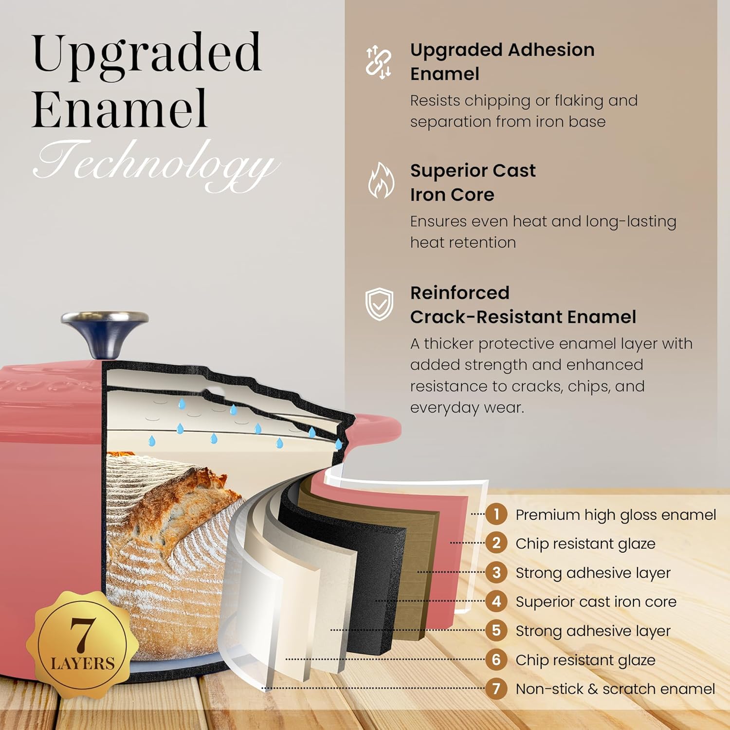 • LOW MAINTENANCE: a great alternative to the traditional bare cast iron pot for busy working individuals, our ovenproof casserole dish is coated with enamel for a sleek smooth finish, enjoy quick and easy cleaning with no need of seasoning!