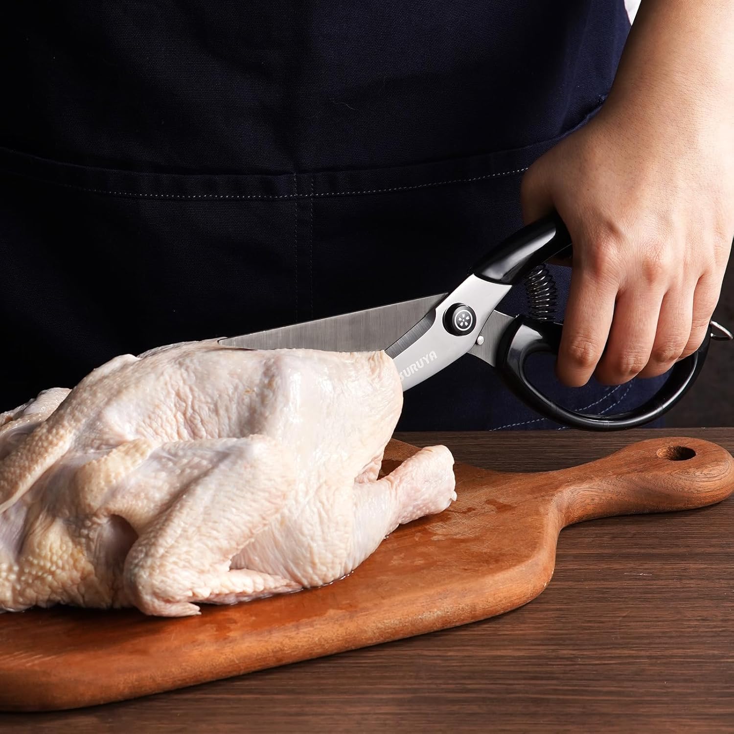 • Strong Construction: Professional kitchen scissors are equipped with stainless steel spring that automatically rebounds, less effort when used. When it is not in use, you can lock the handle for easy storage. Dishwasher safe, but we recommend hand washing