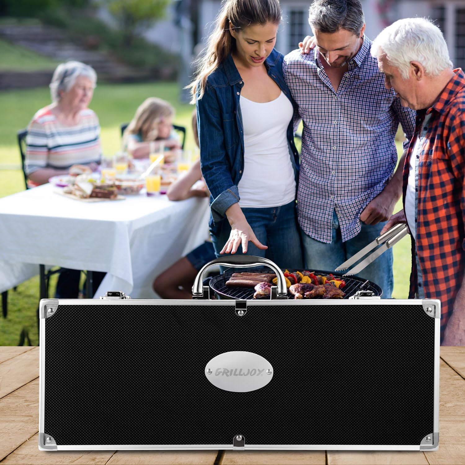 Grilljoy BBQ Accessories Grill Tools Set - 22PCS Stainless Steel Barbecue Grill Accessories for Outdoor Grill with Black Aluminum Case - Christmas Grilling Gifts for Men & Dad -Grill Tools Kit