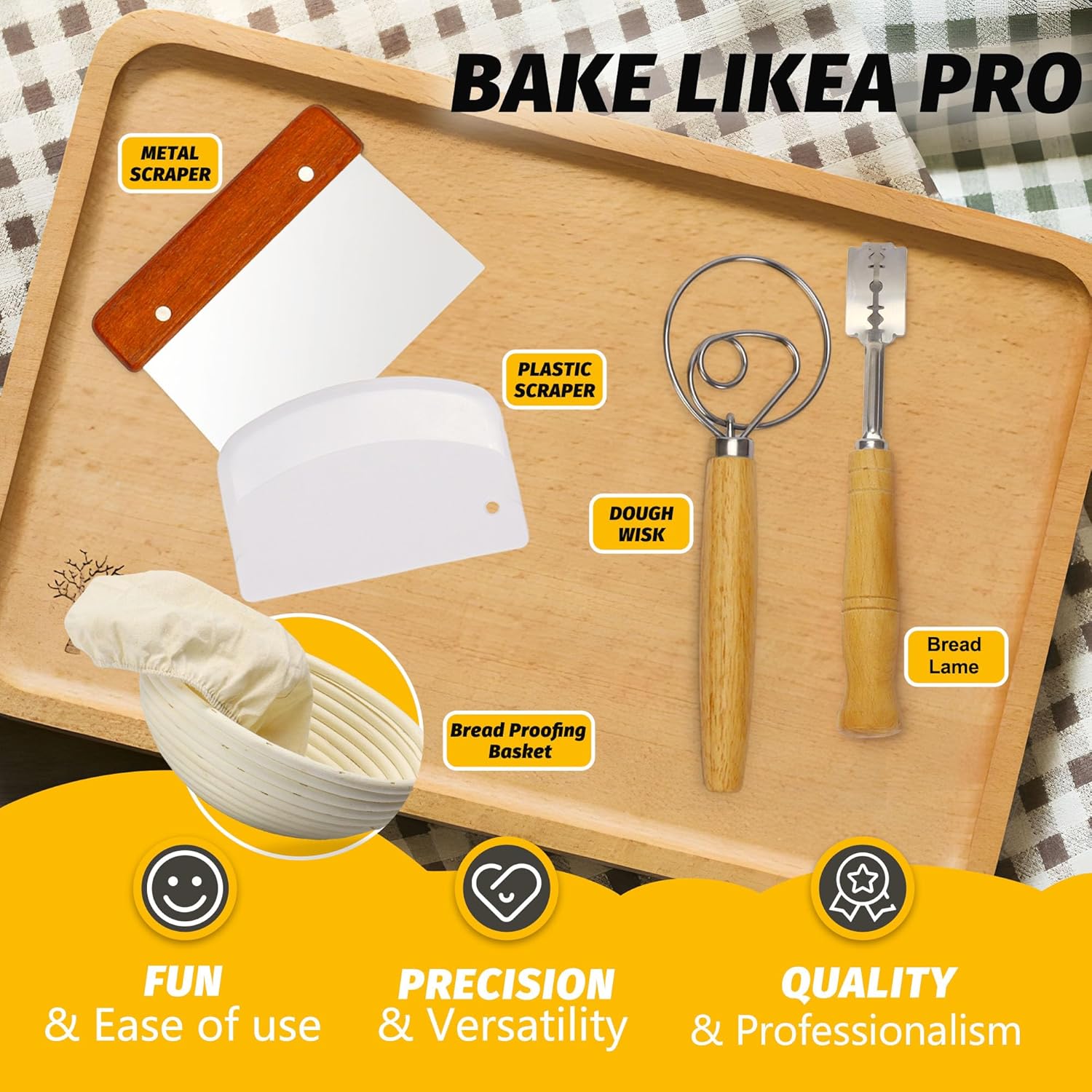5QT Enameled Cast Iron Bread Oven with Proofing Basket for Bread Baking, Bread Making Supplies Tools,Heavy-Duty Cookware for Braising, Stews, Roasting, Bread Baking (Blue)