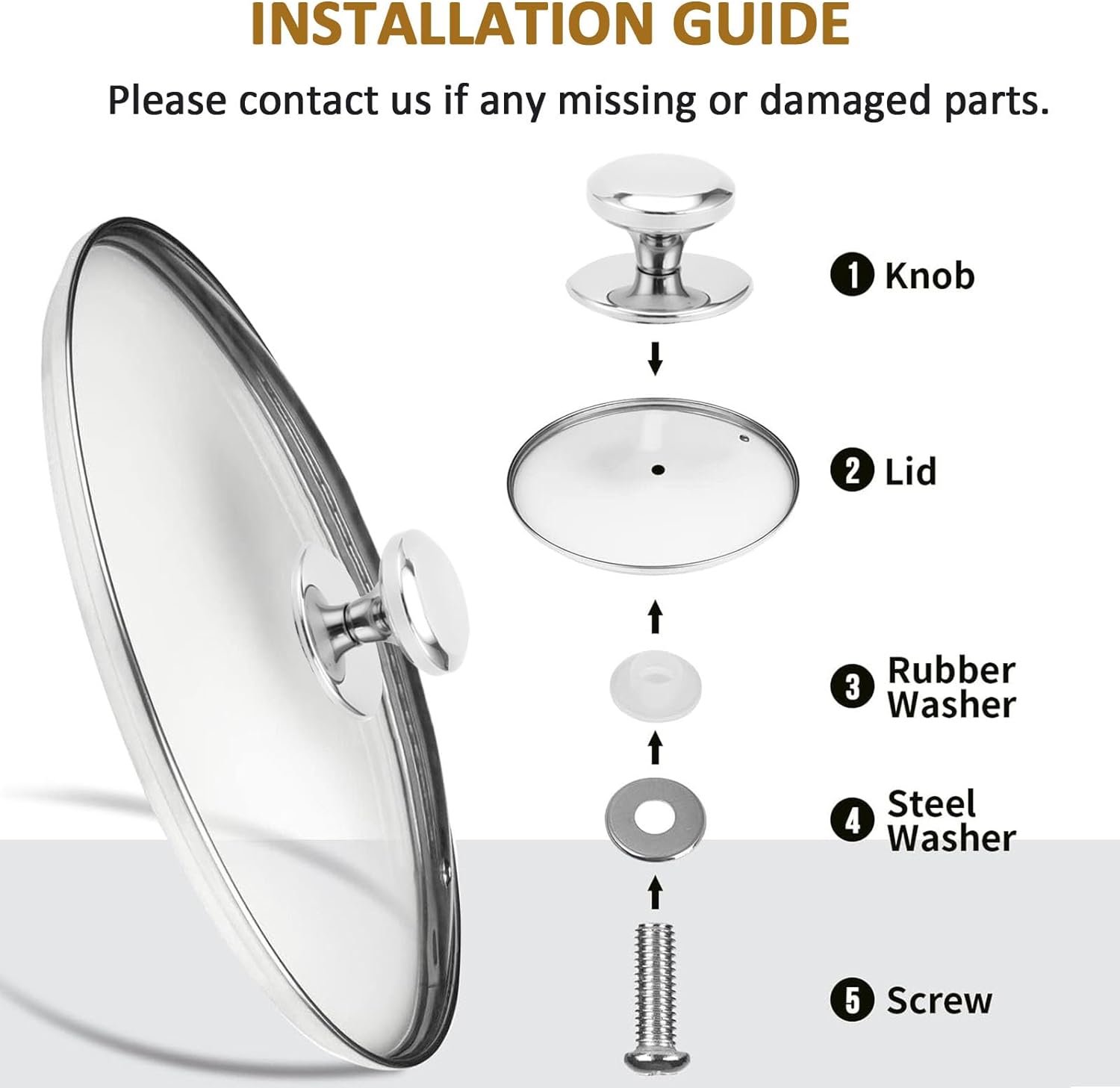 • TEMPERED GLASS & STAINLESS STEEL RIM – The glass lids are made of tempered glass,strong and durable. The edge of the lid is made with stainless steel material, make sure the safe cooking without rust (Please contact us if any broken during shipping)