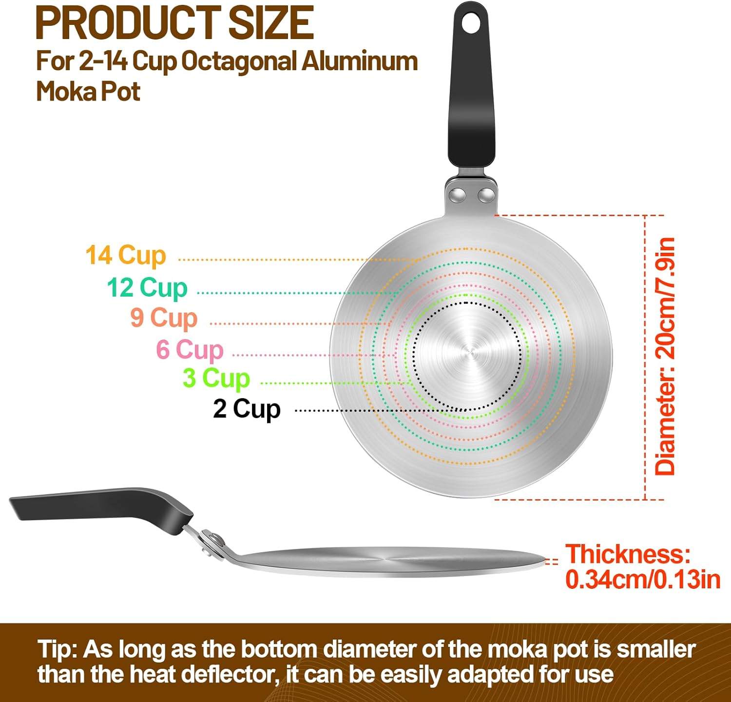 7.9in Induction Cooker Adapter Plate Stainless Steel Heat Sink for Aluminum Moka Pot Coffee Maker for Home and Camping 20cm