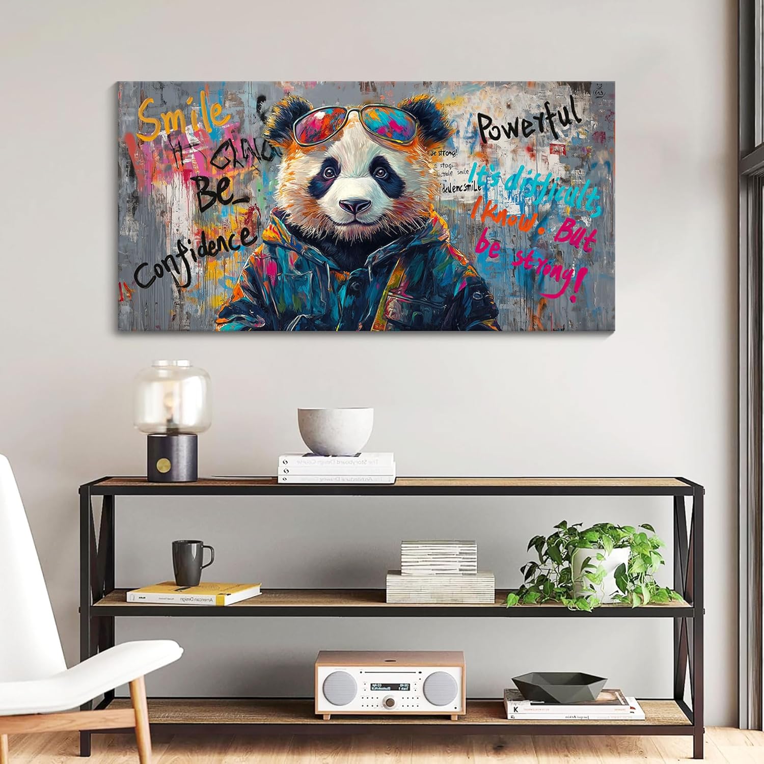 • High-Quality Canvas Art Wall Decor: Made from premium quality canvas, it ensures durability and longevity. The canvas provides a smooth surface that enhances the vividness and texture of the animal and details of the panda hair glasses graffiti. It is resistant to fading, allowing you to enjoy this beautiful canvas art piece for years to come.