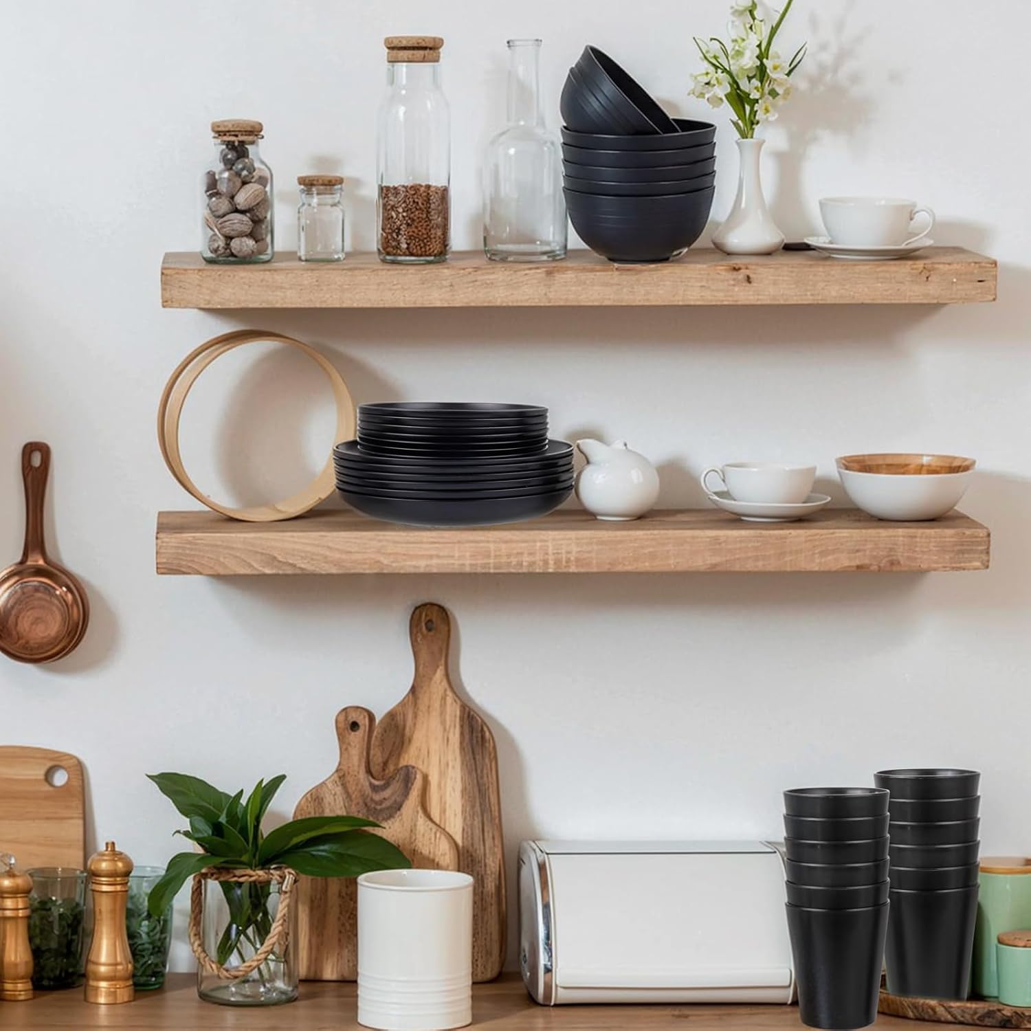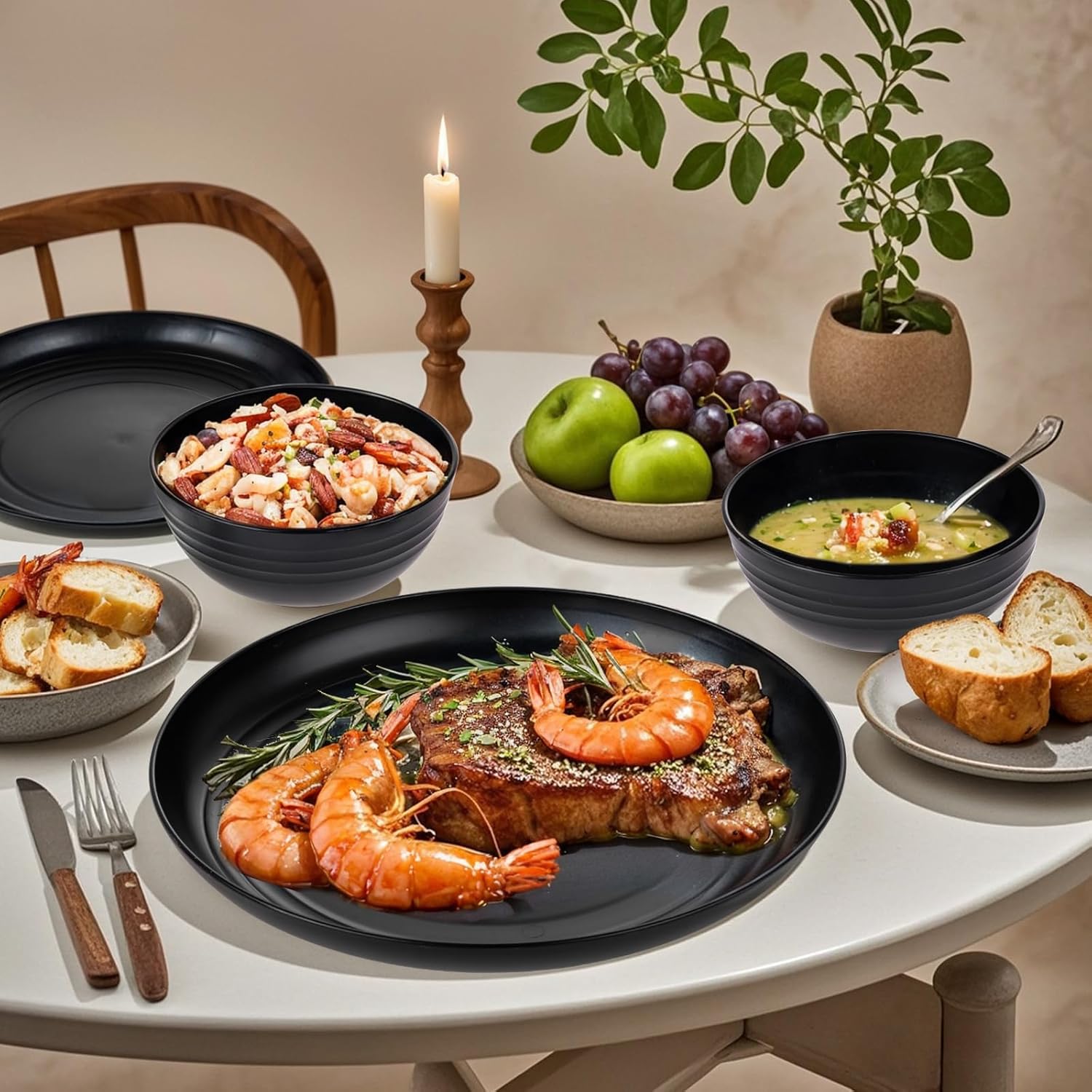 supernal 24pcs Wheat Straw Dinnerware,Unbreakable Dinner Plates Set,Microwave Dishwasher Safe,Black Reusable Plates for Picnic,Birthday,Camping