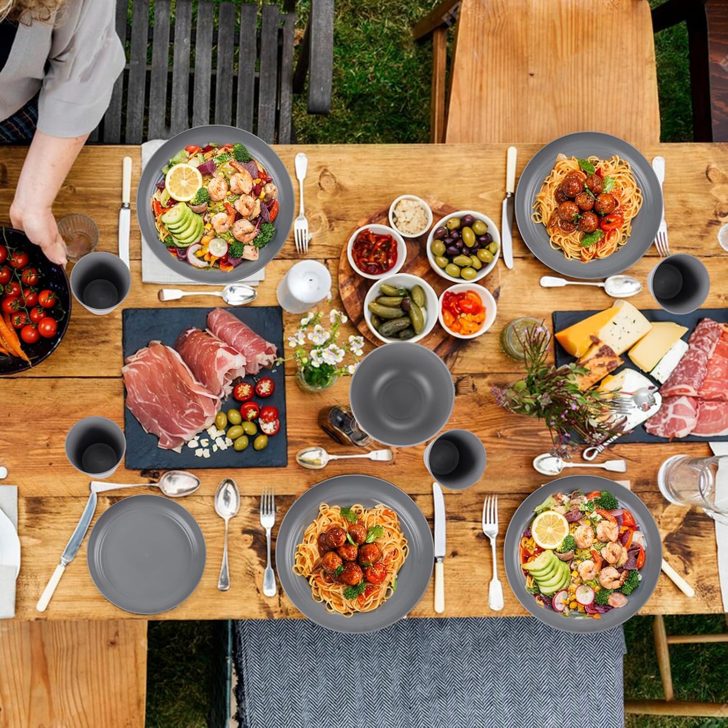 • Package Contents:Dark gray wheat straw dinnerware sets can serve 6 guests.The unique color will bring you and your family and friends a different usage experience,and plate sets will become the eye-catching presence on the dining table.