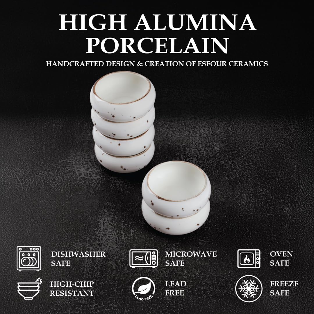 • HOME AND RESTAURANT KITCHENS: This set of ceramic bowls is functional and stylish. Esfour Ceramic Porcelain Bowls - Set of 6 High-Quality Small Soup and Cereal Bowls - Lead-Free, Microwave and Dishwasher Safe - Stylish French and Italian-Inspired Unique Designs - Stackable for Easy Storage - Ideal for Home and Professional Kitchens.