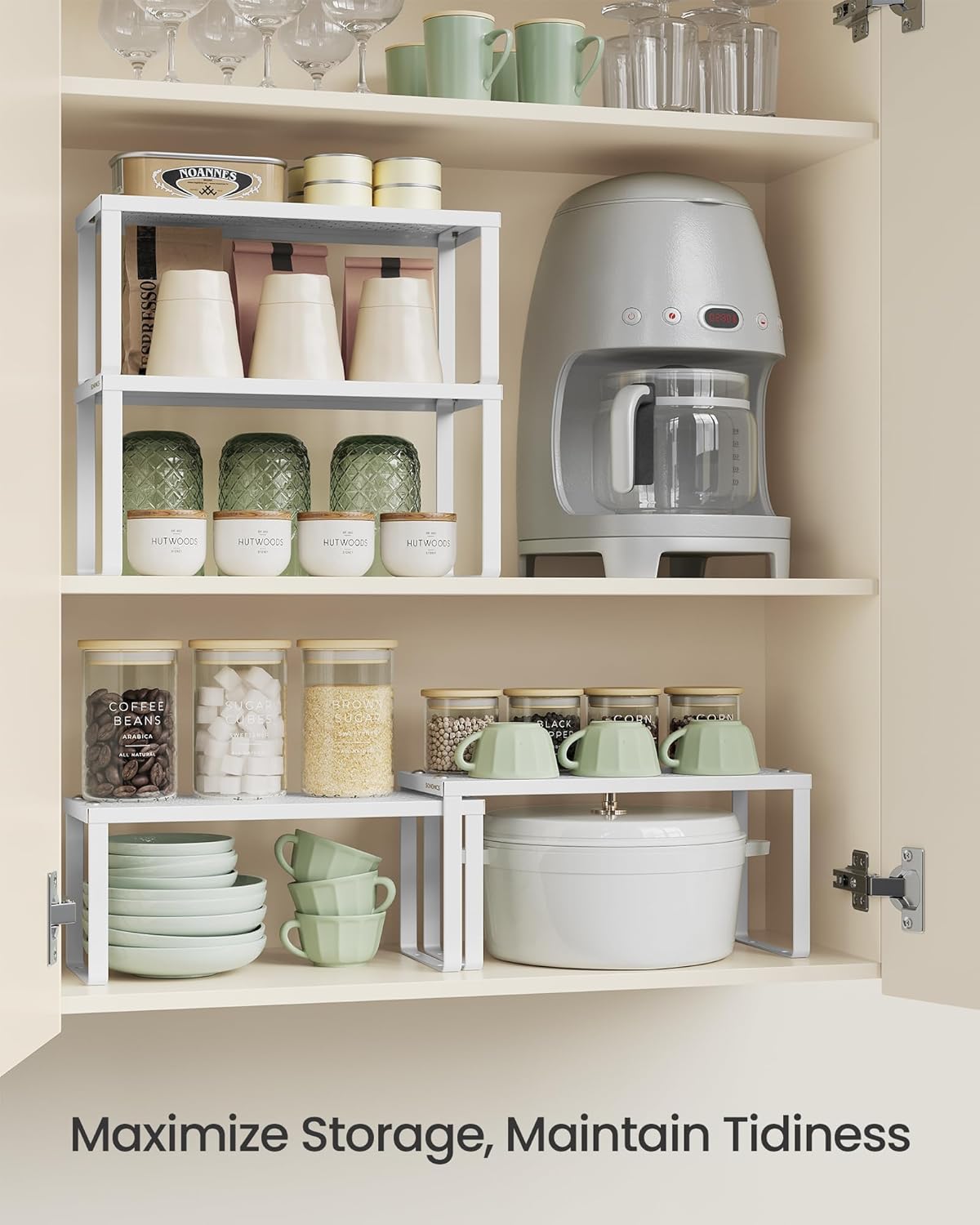 • [Maximize Your Storage] If you have a large cupboard but your items still have nowhere to go, try this set of 2 cabinet organizers—it takes full use of the vertical space and doubles your storage space