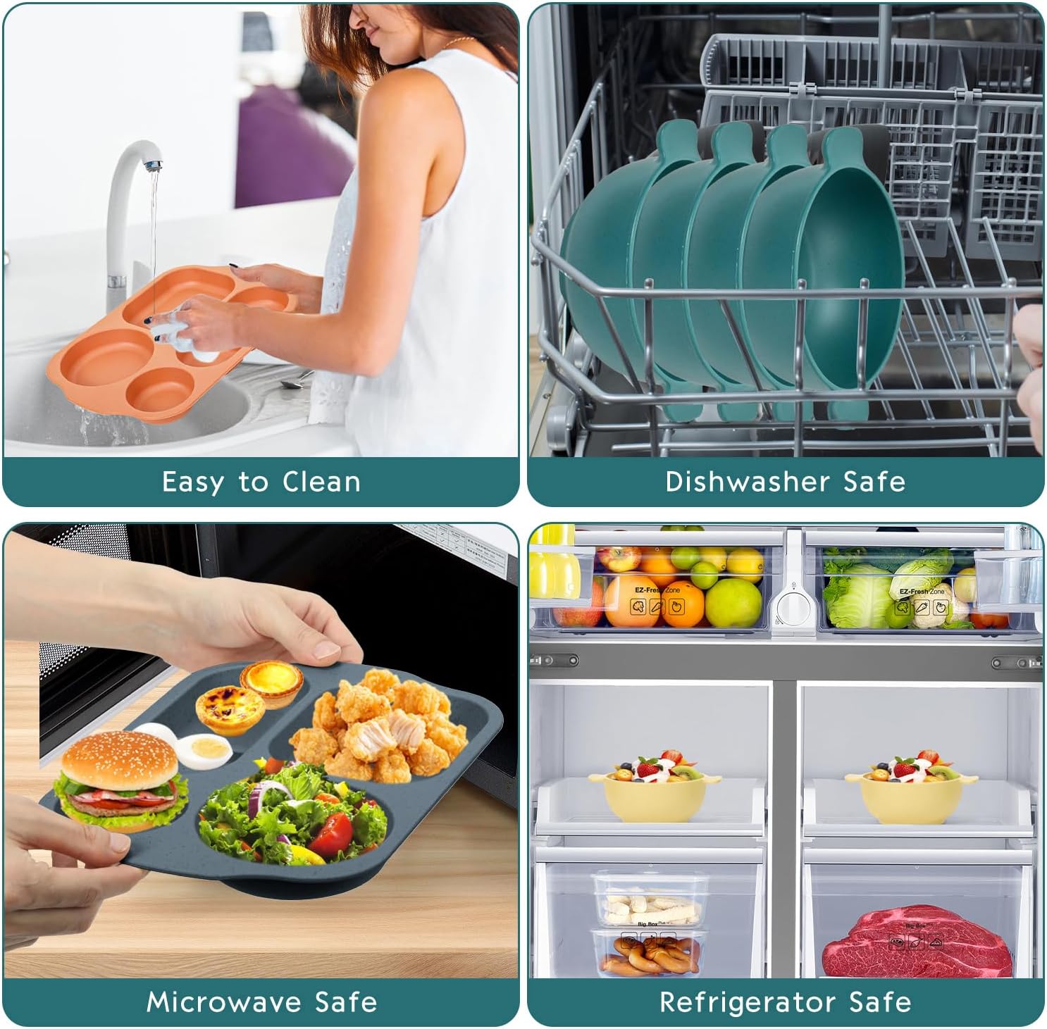 • Wheat Straw Material - Made of natural wheat straw and food-safe PP material, this wheat straw plate and bowl set for 4 is BPA-free, non-toxic and food-safe for both kids and adults. It’s an nature conscious choice for everyday use