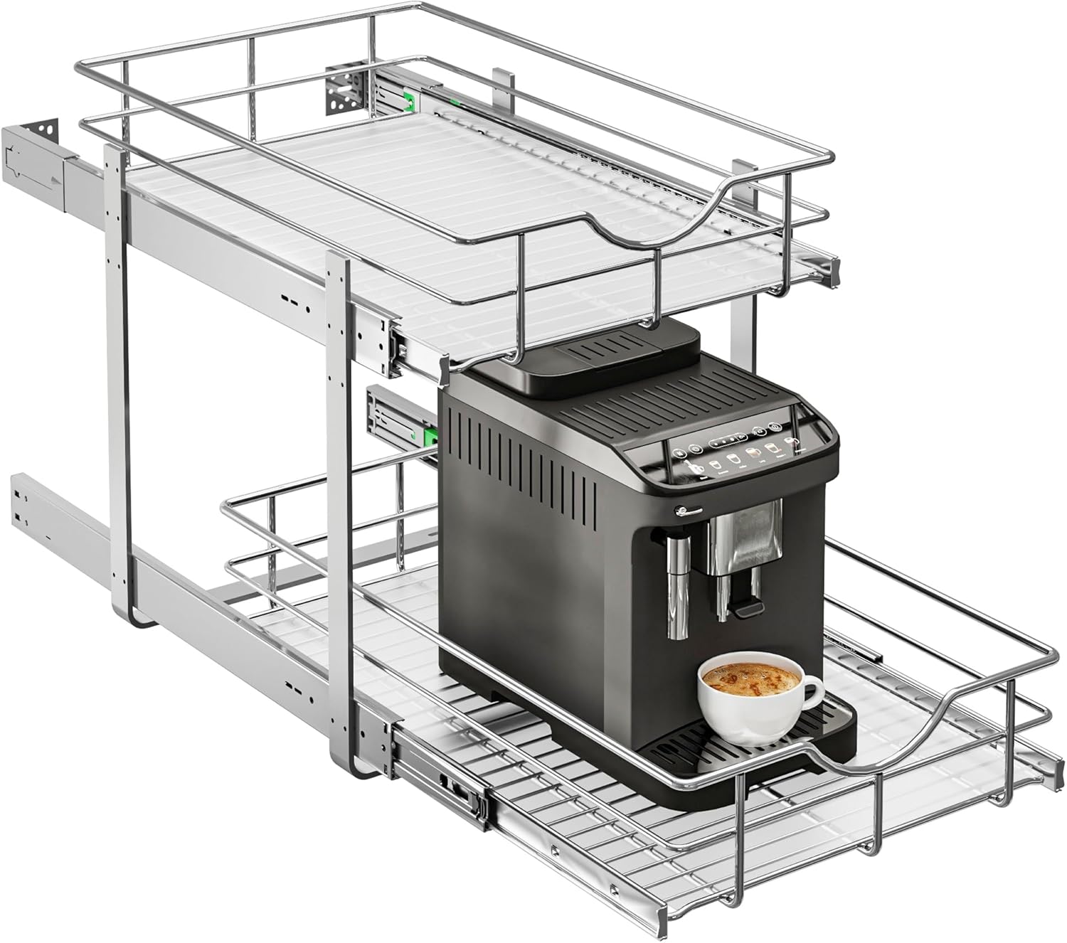 WelFurGeer 2-Tier Kitchen Cabinet Pullout Shelf and Drawer Organizer, Soft Close Pantry Pull Out Shelves, Heavy Duty Pull Out Cabinet Organizer with Shelf Liner for Kitchen Cabinets, Pantry Storage