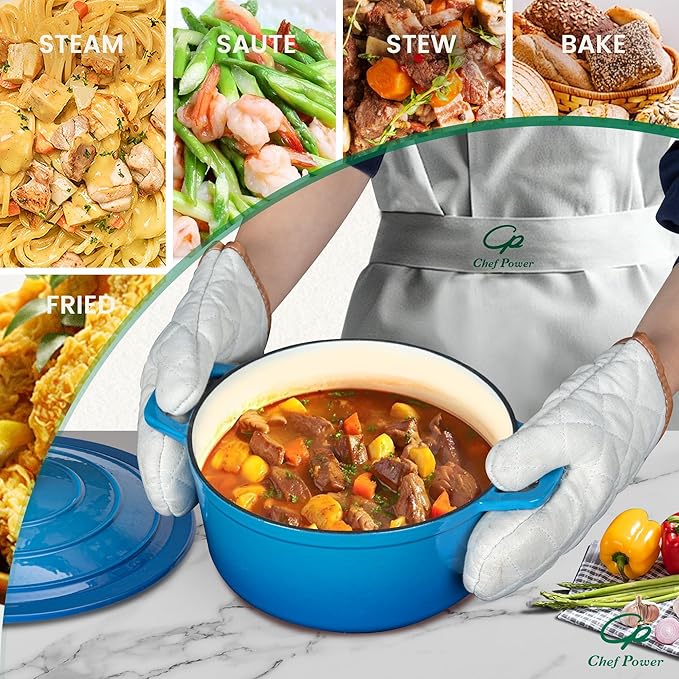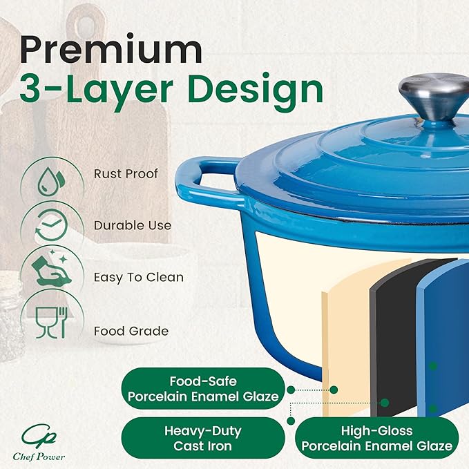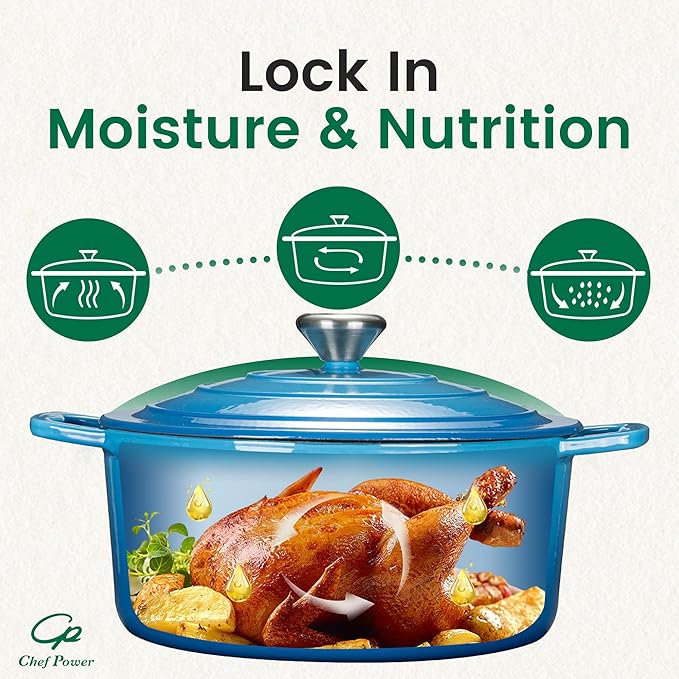• Functional Cookware – Whether you're stewing, boiling, roasting, or frying, create a variety of delicious dishes all in one enameled dutch oven pot! From kitchen to table, experience endless culinary possibilities with Chef Power.