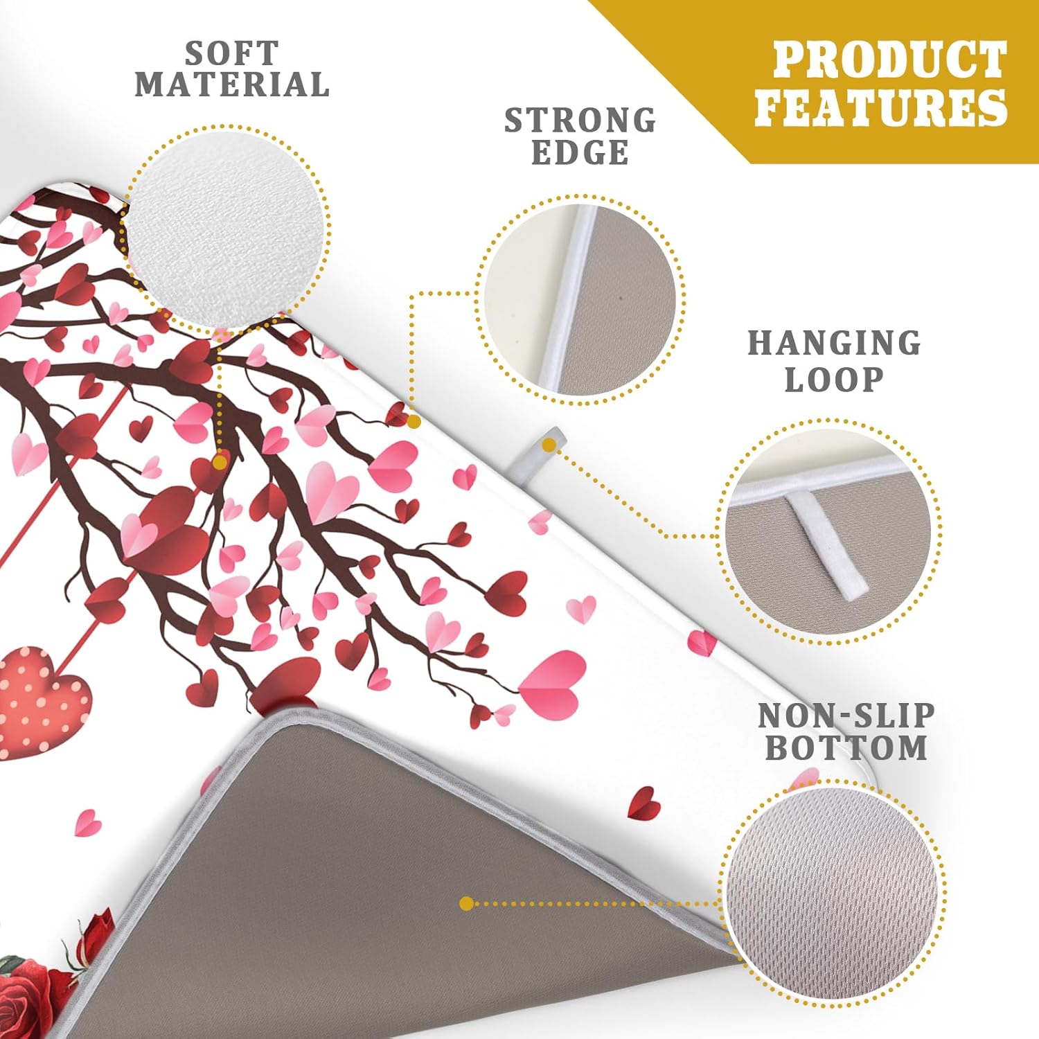Giwawa Happy Valentines Day Dish Drying Mat for Kitchen Countertop, Red Love Hearts Rose Flowers Dish Drainer Mats, Romantic Absorbent Dish Drying Pad Wedding Decor, 18"x24", Large