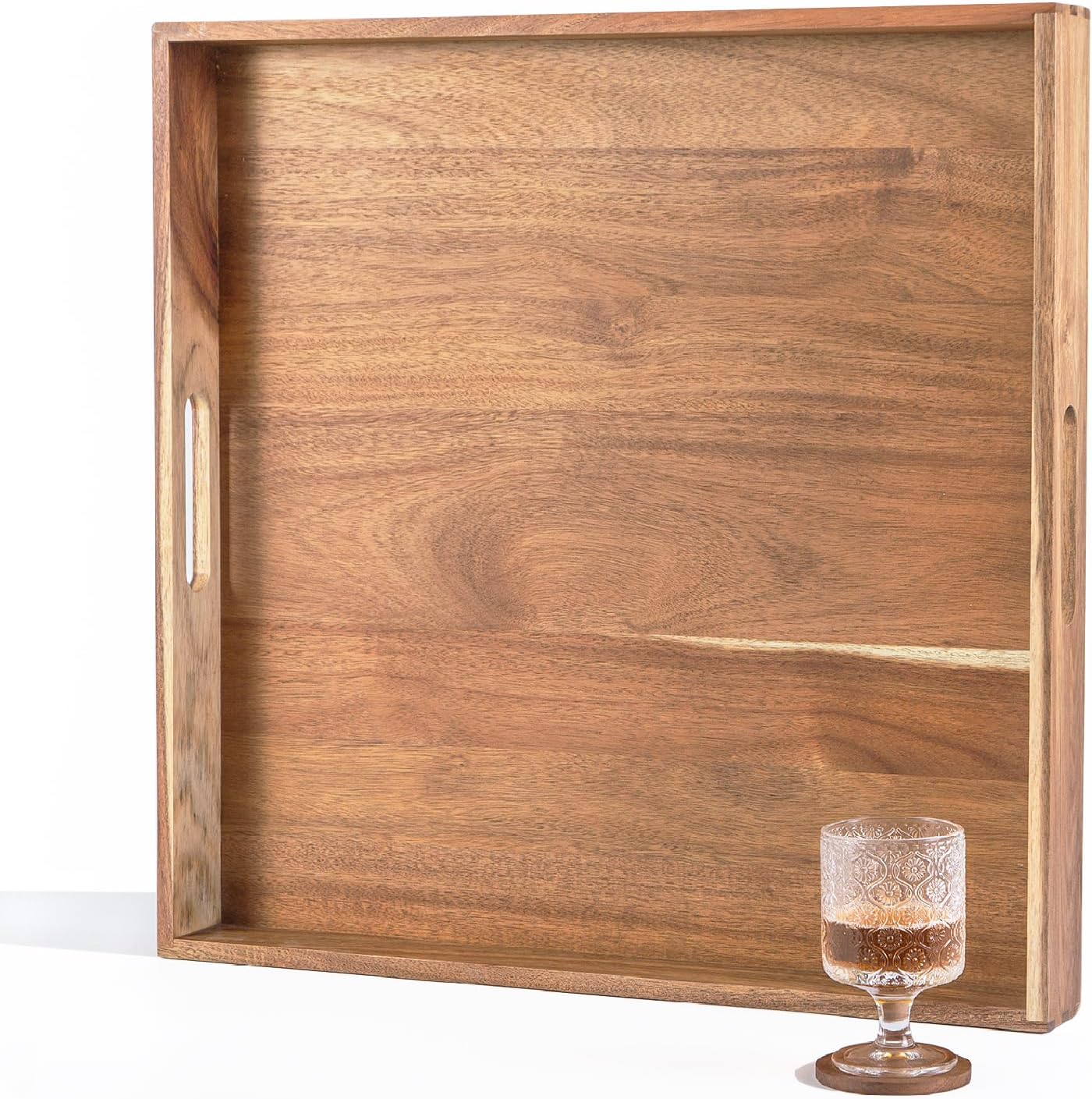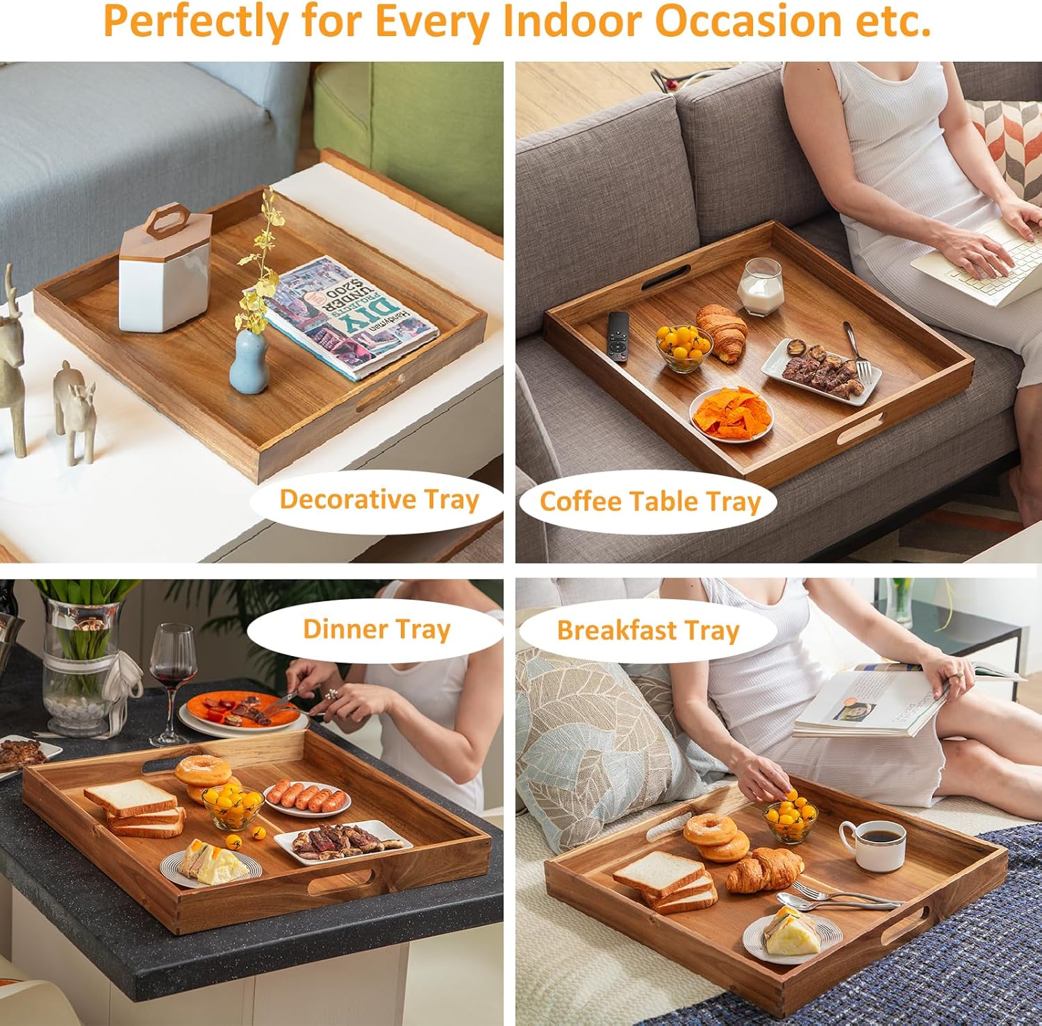Wooden Serving Tray with Handles 22 Inch Extra Large Square Ottoman Tray Acacia Large Wood Trays Ottoman Living Room Wooden Trays