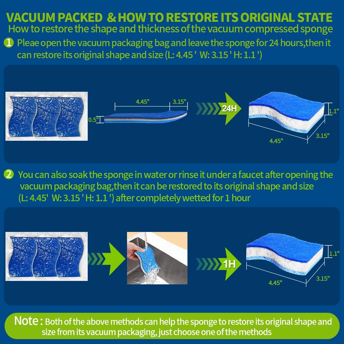 • 【Intimate service and Save your money】If you aren’t completely satisfied with these cellulose sponge, Please contact us via the email(Pucity-service@hotmail.com). Note: As it is vacuum packed, please place it in a vacuum bag for 24 hours or soak the sponge directly in water for 1 hour after receiving it. It will return to its original shape and size(L: 4.45' W: 3.15'THK: 1.1')