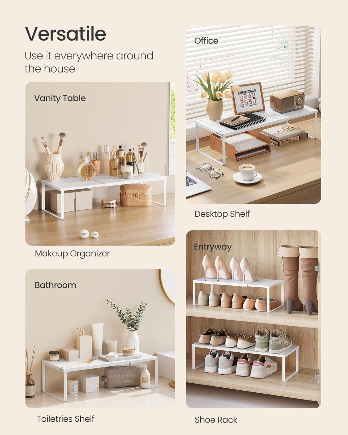 • 【VERSATILE】Place this cupboard shelf in kitchen cabinets or on countertops to store kitchen utensils, in the study to house office utensils and decorations, or in the entryway to keep your shoes off the floor