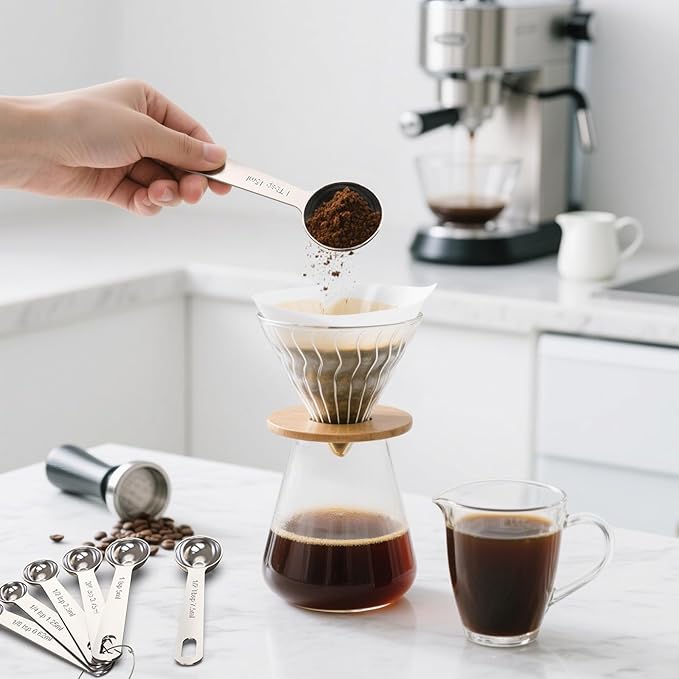 TILUCK Stainless Steel Measuring Spoons Set,Coffee Scoop Spoon,Kitchen Gadgets for Cooking & Baking,Set of 7